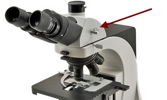 В современных микроскопах "задвижка" - о которой шла речь, это зеркало, в отодвинутом состоянии свет попадает в фотоканал, в задвинутом положении отражается в бинокуляр. Так как зеркало свет отражает, а не пропускает, как это делает призма, то качество картинки не теряется!