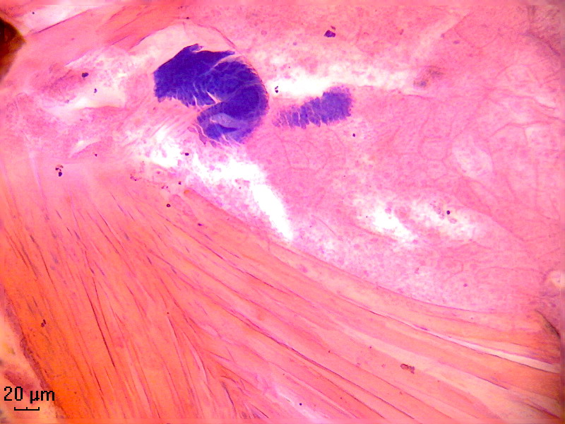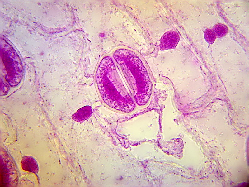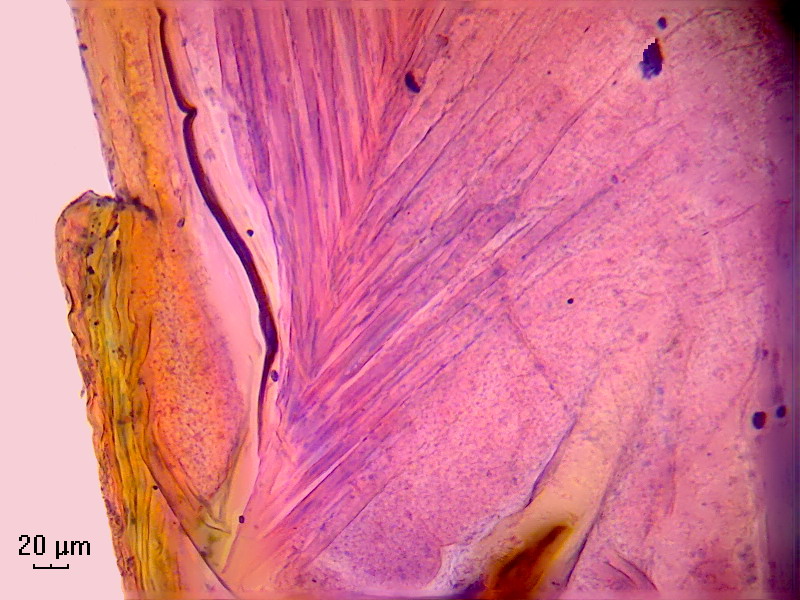 Препарат временный, срезы после просветления в ксилоле погружены в иммерсионное масло.