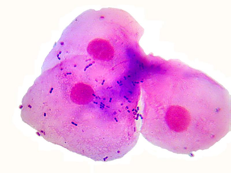 Снимок 2: клетки буккального эпителия и паразитирующие на них грам-положительные бактерии