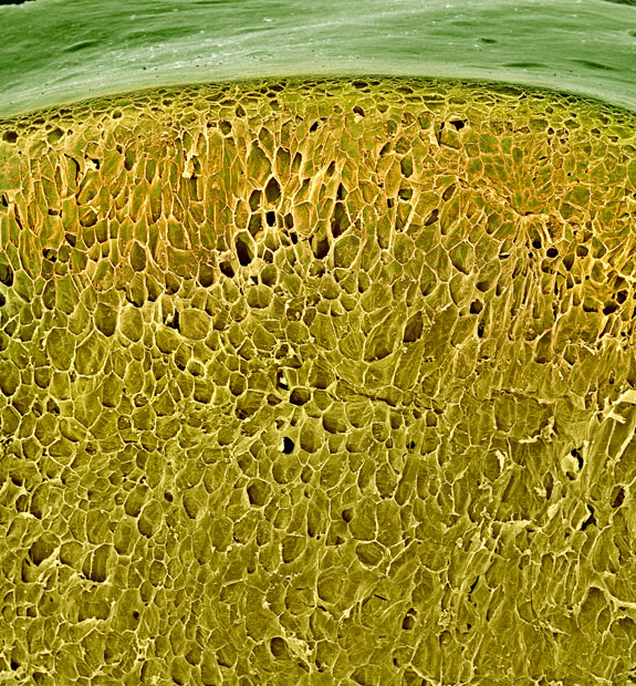 Электронный микроскоп (ЭМ) — прибор, позволяющий получать изображение объектов с максимальным увеличением до 106 раз, благодаря использованию, в отличие от оптического микроскопа, вместо светового потока пучка электронов с энергиями 200 В ÷ 400 кэВ и более. В световой микроскоп, доступный каждому, данный фото не получить!