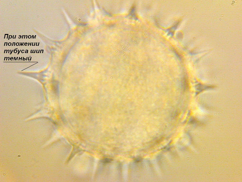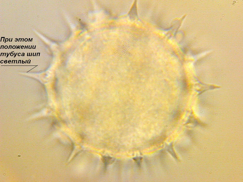Фото 4. Обратите внимание на отмеченный шип. Он светлый. В его основании просматриваются темные поры.