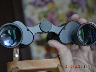 линзы окуляров так же просветлены в зелёно-лиловых тонах-просветление возможно не полное,картинка бинокля весьма порадовала-очень резкая на оси,и 60% его поля довольно неплохого качества-далее к периферии идёт деградация+дисторсия+хроматизм(синева)думаю это нормально-поле обзора бинокля неплохое,примерно 60-62 градуса с наглазниками,кстати наглазники высокие+имеют материал- тонкий пластик..вывинчиваются и поле становится чуть шире-под 65 градусов