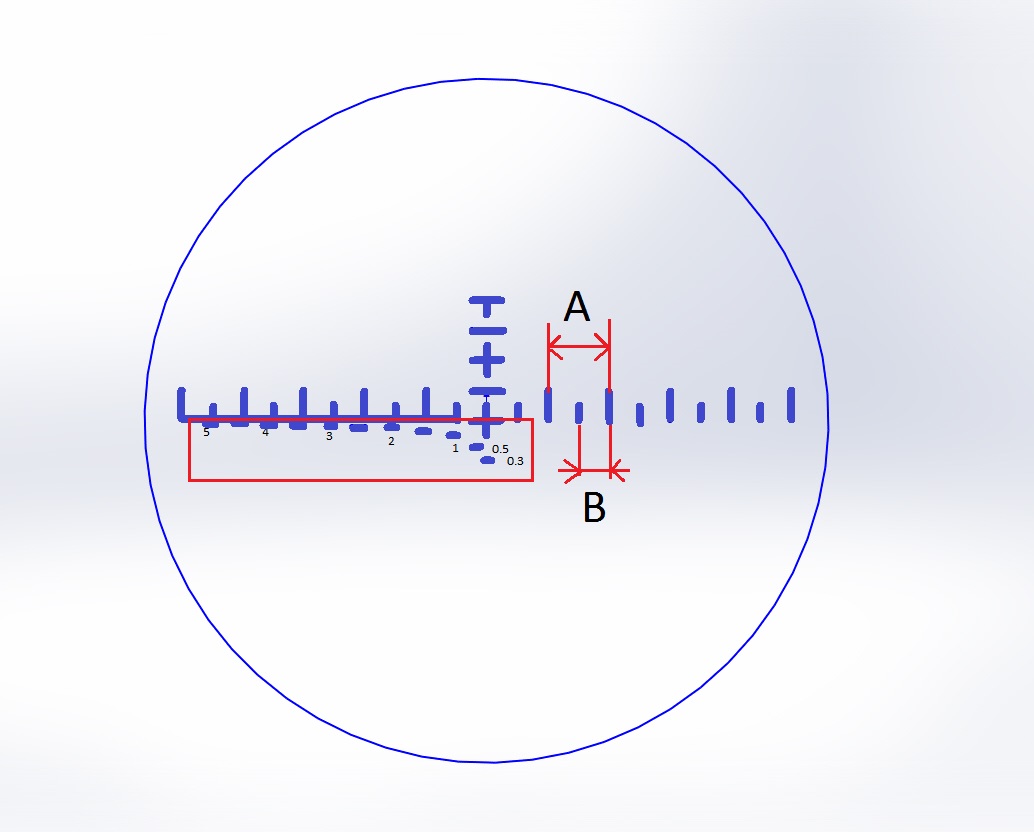 Здравствуйте, друзья. Имею бинокль БШ 10х50 производства ЗОМЗ. В правом окуляре у него имеется угломерно-дальномерная сетка. Возникло несколько вопросов по пользованию ей: 1 Какова цена деления"А" и "В"? 2. Под какой размер цели рассчитана работа с дальномерной сеткой (средняя высота человека? высота телеграфного столба? или что то другое)- на фото в рамочке. Паспорт на изделие отсутствует. Заранее благодарю за помощь