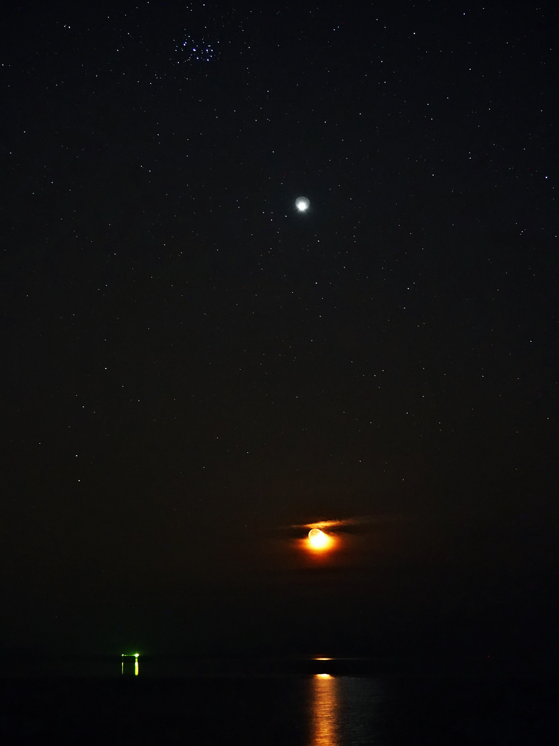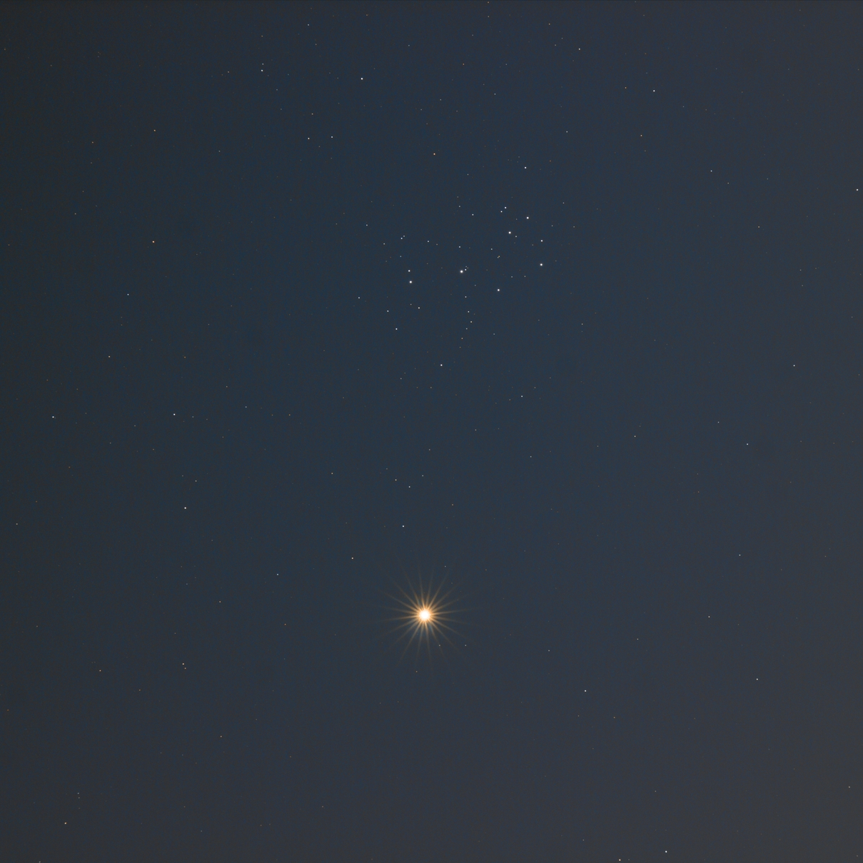 Хочу напомнить, что в первых числах апреля 2020 года произойдет тесное сближение Венеры с Плеядами (Стожарами). А 3 апреля планета пройдет практически на фоне центра этого известного звездного скопления. Пять лет назад, в апреле 2015 года мне удалось наблюдать и сфотографировать подобное, но более дальнее сближение. Харьков, двор многоэтажки, самодельный астротрекер, Canon 550D, объектив Таир-11 (135/11), 27 кадров по 10 сек, iso1600.