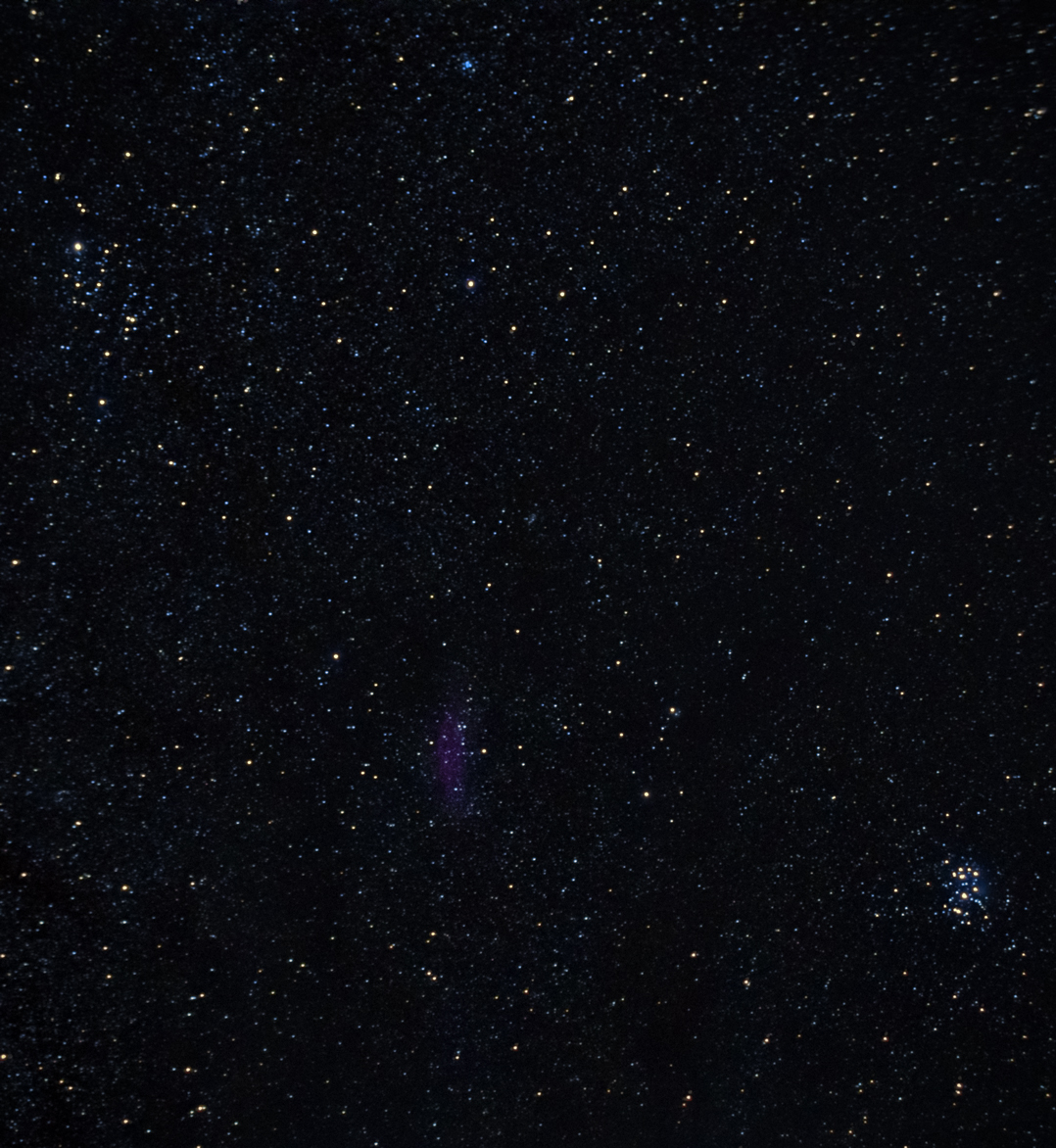 Комментарий к файлу: 16.10.18. Sony SLT A-57+minolta maxxum 28-85+фильтр SKY_1A, эквивалентный фокус 42 мм. Исо 800-30сек-35кадров. Кроп. DSS,FitSt, PSS. Плеяды, туманность Калифорния, Спиральное скопление.