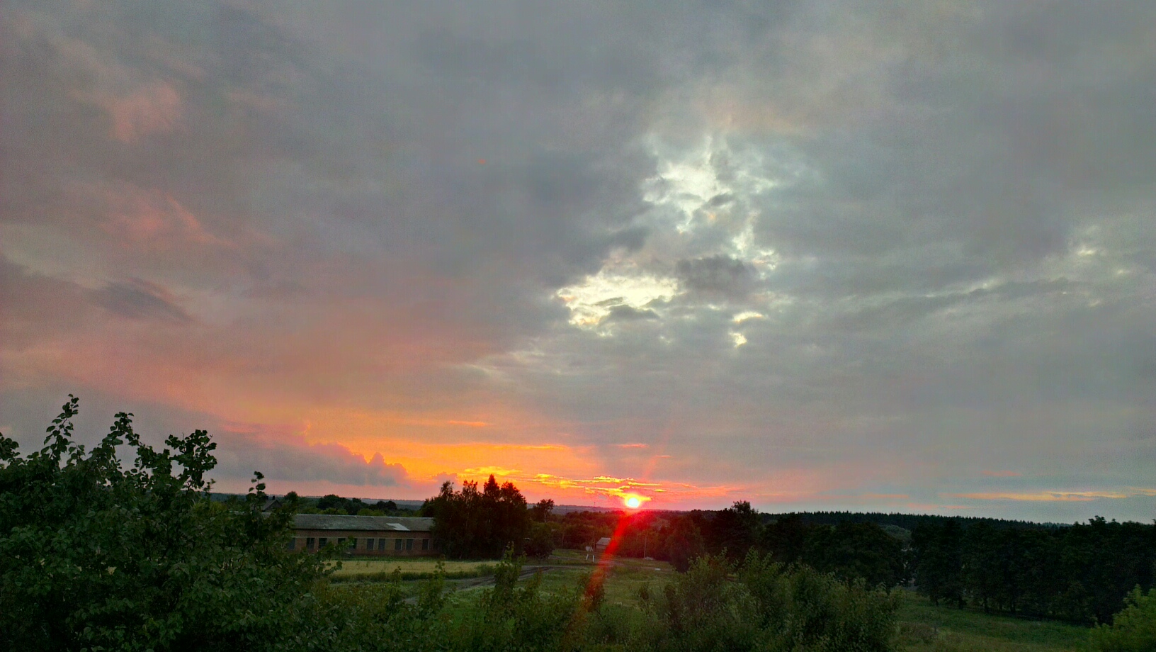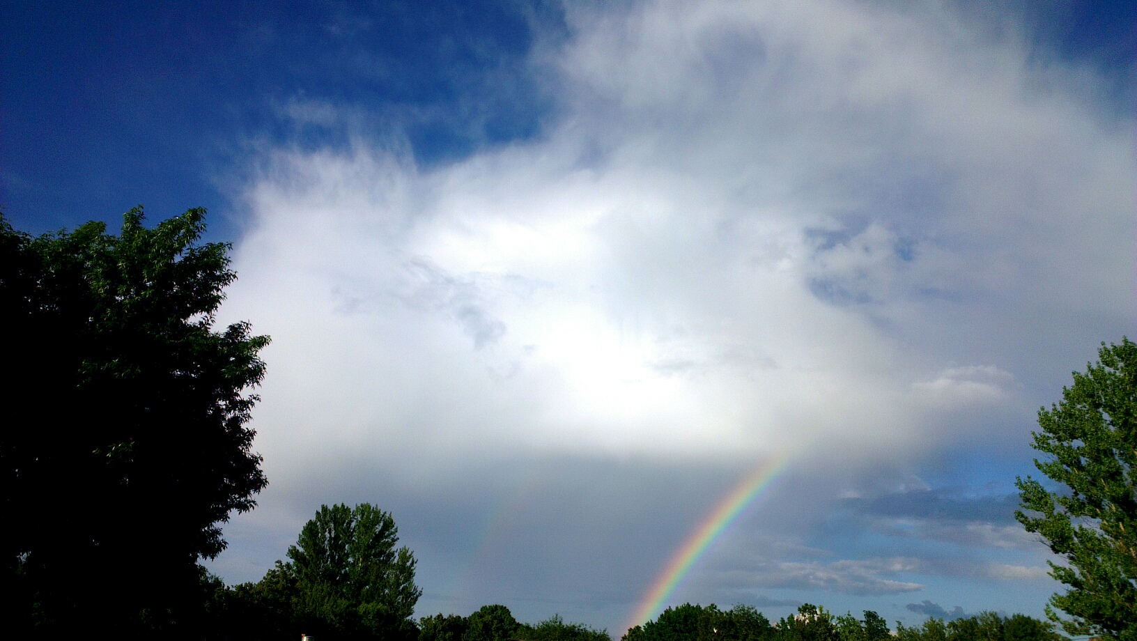 вчера. светит Солнце,дождя нет. на востоке радуга не с чего.