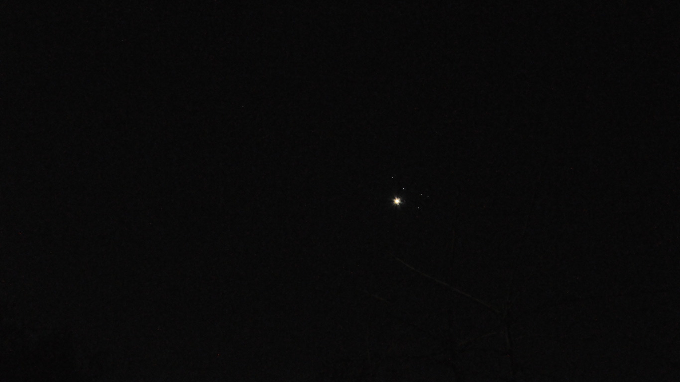 Клацнул и я вчера Венеру в Плеядах. Одиночный кадр. Никон Д90. 105 мм, ИСО 6400. 2 сек. Неподвижная камера. Таких кадров есть 5 штук, но складывать так и не научился...