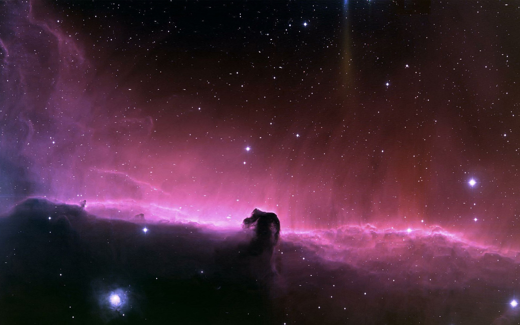 Всем хорошо известна знаменитая туманность Конская голова, расположенная в созвездии Ориона. На снимке ниже гораздо более слабая туманность, принимающая знакомую форму при более детальном разглядывании. Основная часть комплекса молекулярных облаков, изображённого на этой фотографии — отражательная туманность, записанная в каталог под именем IC 4592. Отражательные туманности состоят из очень тонкой пыли, которая обычно кажется тёмной, но может принимать голубоватый цвет, отражая излучение соседних звёзд. В данном случае источником большей части голубого свечения является звезда, расположенная в "глазу" космической лошади. Звезда — это часть ν Скорпиона — одной из ярчайших звёздных систем в созвездии Скорпиона. Ещё одна отражательная туманность IC 4601 окружает две звезды, расположенные вправо и вверх от центра фотографии.