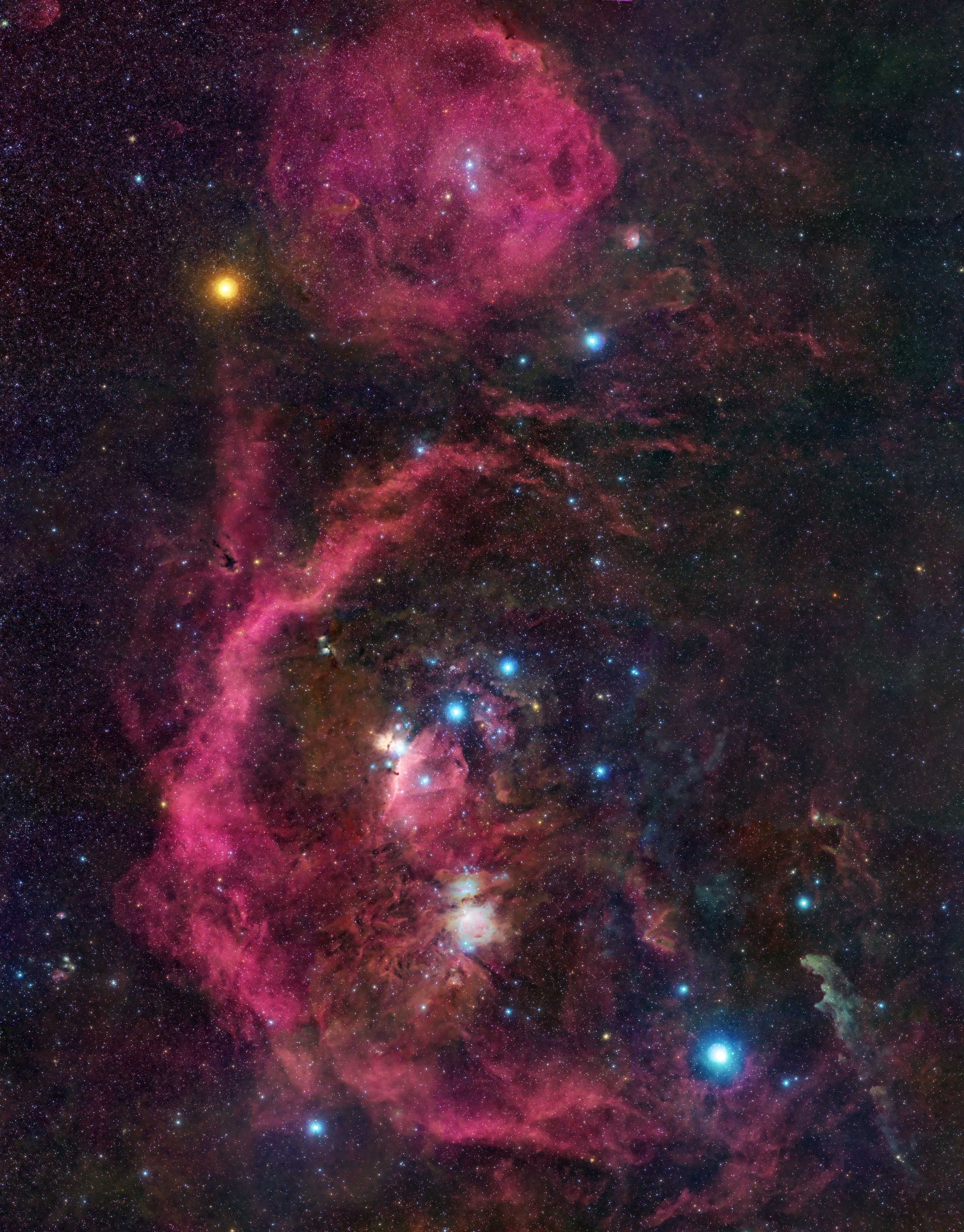 Напомним, что туманность Конская голова является частью молекулярного облака Ориона, расположенного от нас на расстоянии в 1500 световых лет в созвездии Ориона. Это облако содержит также другие хорошо известные астрономам-любителям объекты, такие как Большая Туманность Ориона, Пламенная туманность и Петля Барнарда. Она является одной из самых ближних и наиболее удобных для фотосъёмки областей космического пространства.