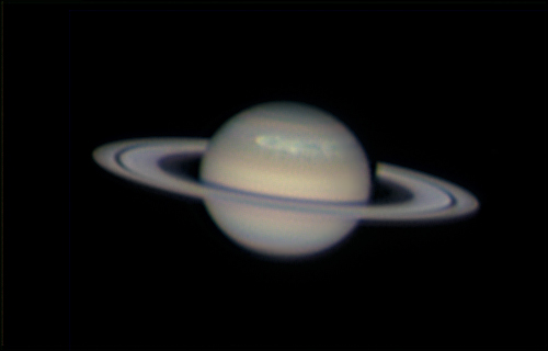 Это был один из самых больших и долгоживущих среди всех ураганов, когда-либо наблюдавшихся в нашей Солнечной системе. Впервые замеченная в конце 2010 года, эта облачная структура в северном полушарии Сатурна уже в самом начале была больше Земли, а вскоре распространилась вокруг всей планеты. За ураганом следили не только с Земли, с близкого расстояния его наблюдал автоматический космический аппарат Кассини, обращающийся вокруг Сатурна. Это изображение в инфракрасном свете было получено в феврале. Оно показано в искусственных цветах: окрашенные в оранжевые оттенки облака находятся глубоко в атмосфере, а более светлые – в верхних слоях. Кольца Сатурна видны почти точно с ребра как тонкая голубая горизонтальная линия. Изогнутые темные полосы – это тени колец на верхнем слое облаков. Ураган бушевал более шести месяцев, он обогнул всю планету и попытался поглотить свой собственный хвост – что привело к его неожиданному затуханию.