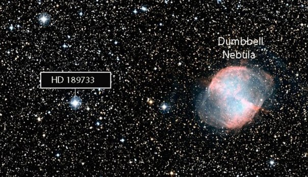 Земля при взгляде с орбиты выглядит голубой планетой из-за того, что вода в здешней атмосфере поглощает красные и зеленые световые волны сильнее, чем голубые. Голубой цвет экзопланеты имеет другое объяснение — его причиной является не присутствие воды на планете, а то, что в ее атмосфере достаточно силикатов, т.е. минералов, содержащих кремний и отражающих голубой цвет. Планета относится к классу так называемых горячих юпитеров — газовых гигантов, расположенных очень близко к центральной звезде системы. Период вращения HD189733b вокруг звезды составляет менее 2,5 дней. Вероятно, вращение этой планеты синхронизировано с ее орбитальным движением — планета всегда обращена к звезде одной стороной.