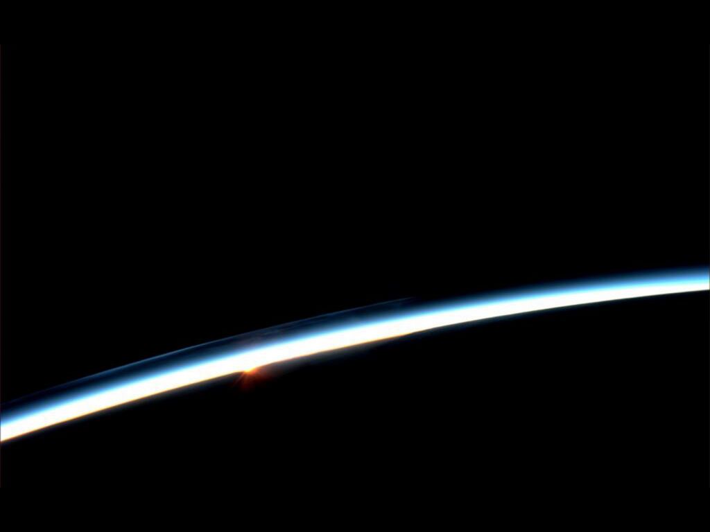 Первый намек на восход Солнца на орбите Земли. Таким его увидела 30 июля 2013 года бортинжинер 36 экспедиции на Международную космическую станцию Карен Найберг. Один оборот вокруг Земли станция совершает примерно за 90 минут на скорости около 17 500 миль в час и экипаж видит 16-17 восходов и закатов ежедневно.