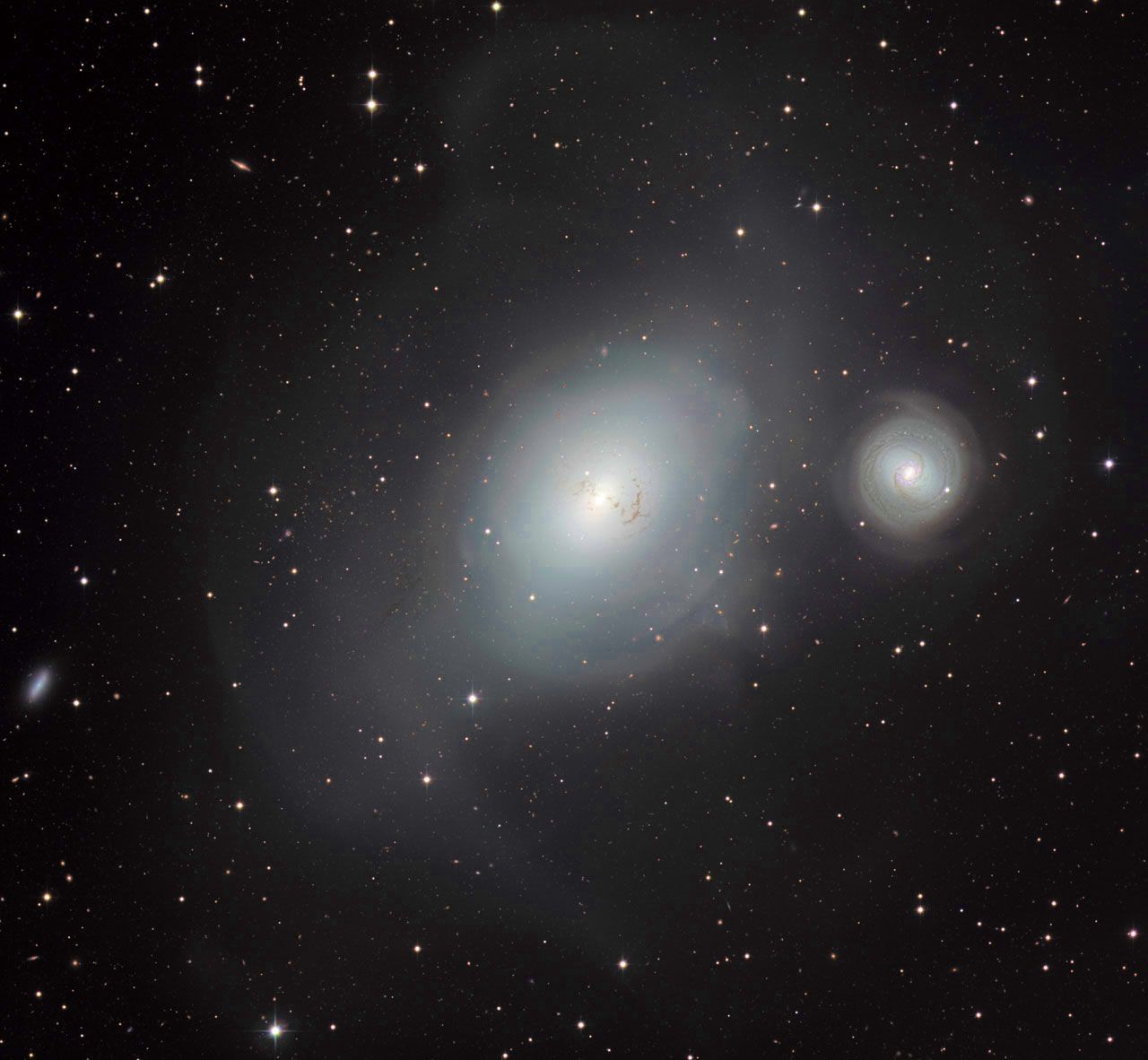 На этом снимке можно также видеть объекты далекой Вселенной, расположенные гораздо дальше, чем две ярких галактики на переднем плане. Большинство слабых туманных пятнышек на снимке являются далекими галактиками, слева от NGC1316 наблюдается особенно плотная их концентрация.