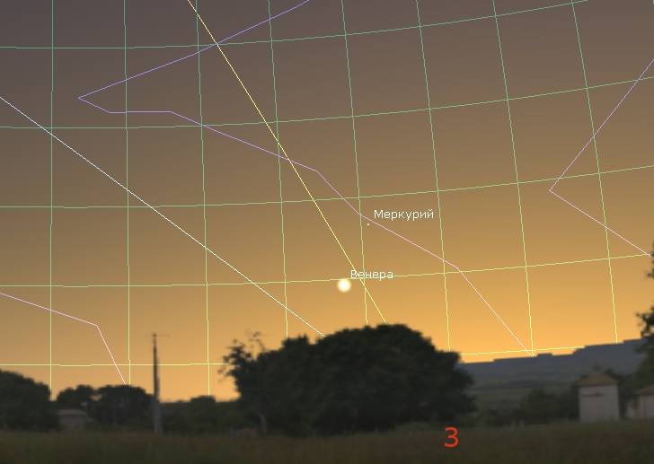 Подробнее в теме "Наблюдения Меркурия" 2 апреля - сближение Сатурна и Марса. Угловое расстояние между планетами составит чуть больше двух видимых диаметров Луны. Примечательно, что чуть ниже Марса, на расстоянии меньше видимого диаметра Луны будет располагаться шаровое скопление М22 созвездия Стрелец. На небольшом увеличении до 30 крат все три объекта можно будет наблюдать в поле зрения телескопа одновременно.  Просмотров: 1844