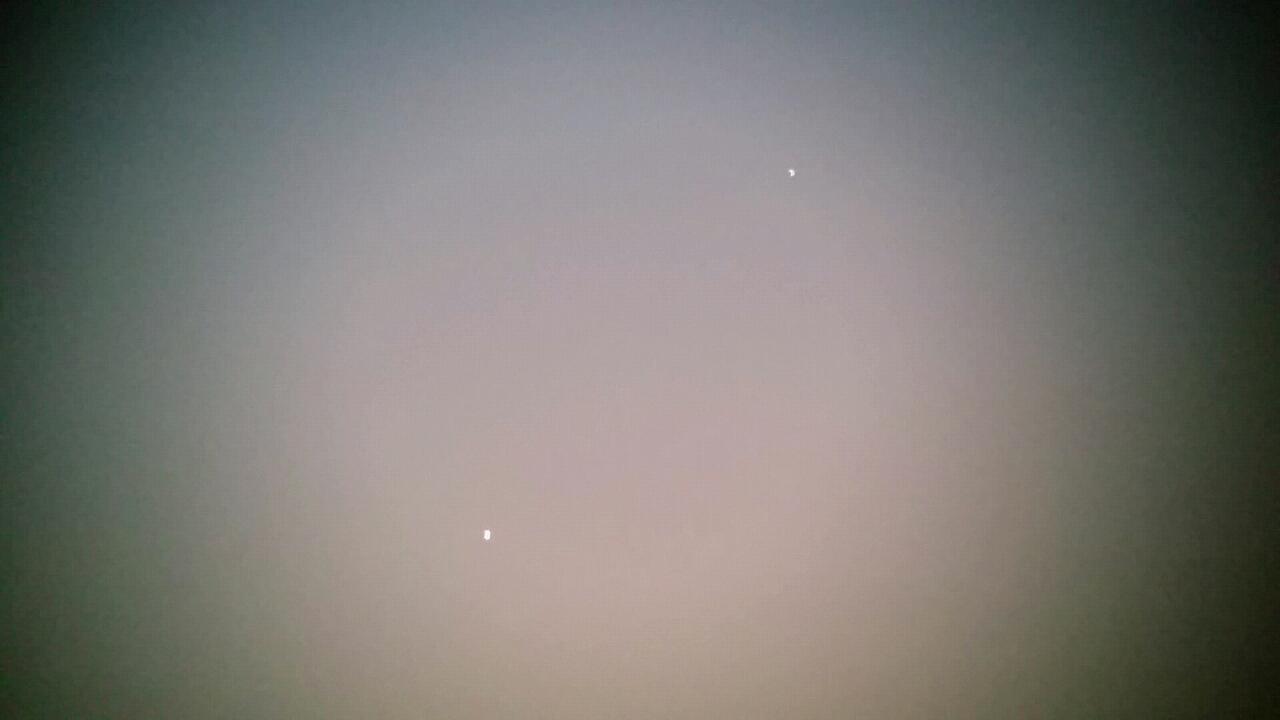 сегодня после захода Солнца наблюдал Венеру. Всегда жду появления Венеры на вечернем небе...хоть и в наблюдении она не так уж и интересна.но само присутствие нашей яркой соседки мне нравится. Пользуясь на телефоне программой стелариум легко нашел Венеру на светлом небе. При наблюдении в бинокль показался и Меркурий. Обе планеты с большим запасом помещались в поле зрения бинокля. Все это очень классно смотрелось на фоне красивейшего заката. Клацнул смартом через бинокль...извращение конечно.в одной руке бино,а в другой смарт. Это не тряска,это землетрясение
