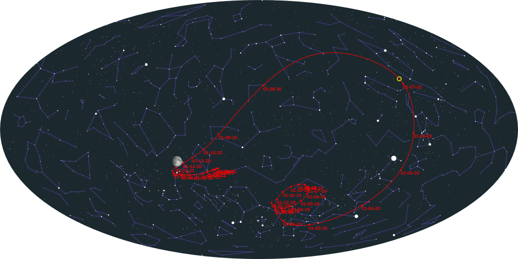 6 июля - Луна вблизи полнолуния пройдет на расстоянии около 3° от Юпитера, Сатурна и Плутона.