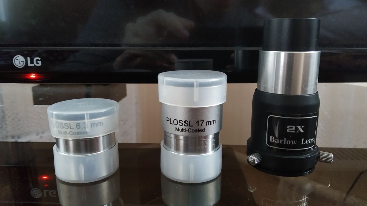 Телескоп придбав влітку, користувався обережно. Присутні оригінальні коробки, інструкції. В комплекті йде шукач 5х24, лінза барлоу 2х та 2 окуляри Plossl 17 і 6,3 мм відповідно (52х та 142х).