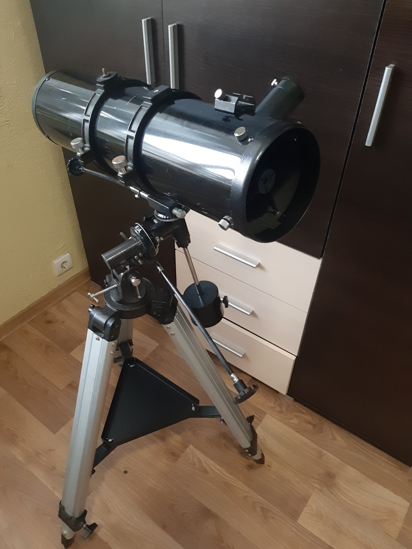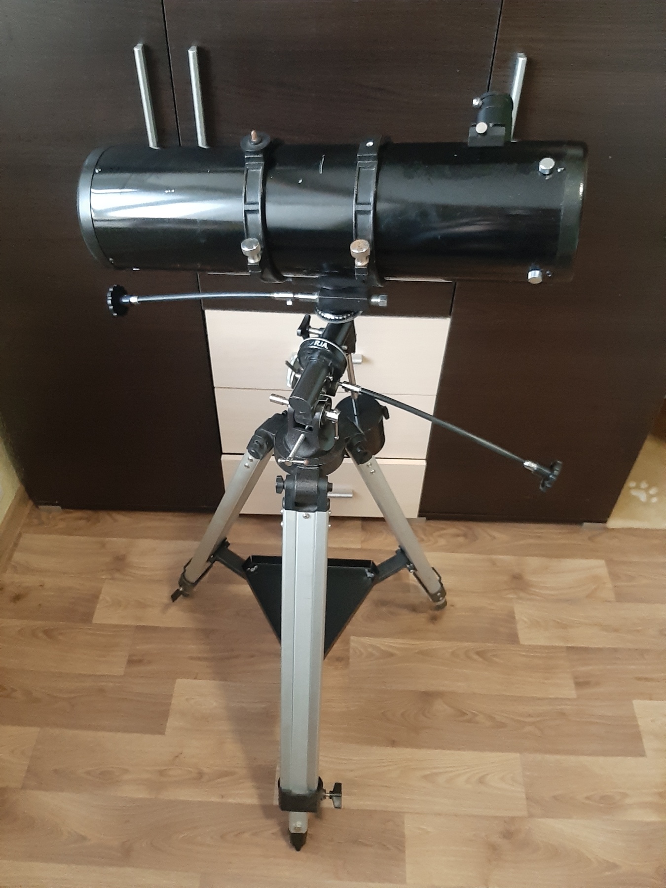 Отличный телескоп, подойдёт как новичку, так и любителю, использовался очень аккуратно. Последние 3 года лежал в шкафу, так как не было времени на хобби, решил продать. На корпусе есть пару царапин. Сделал спец. приспособление для удобной переноски телескопа(смотреть фото). Телескоп очень хороший, установил и смотри.