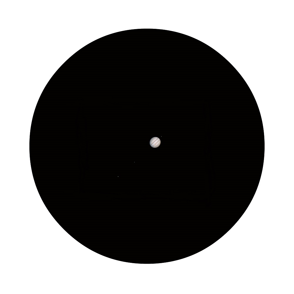 P.S. для примера картинка приблизительно как выглядит Юпитер при увеличении 162х в окуляр и 130/650 ньютон с соотношением размера и видимых деталей (откройте картинку в полном размере). При хорошей атмосфере может быть белее контрастно и четко + можно больше увеличение взять.