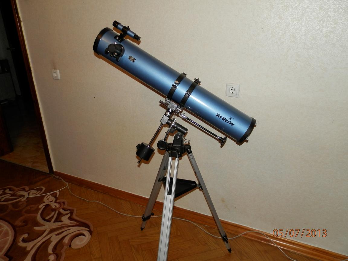 Телескоп продан.Причина продажи: стоит без дела, практически не пользовались.Рефлектор системы Ньютона с диаметром объектива 114 мм на классической экваториальной монтировке немецкого типа, снабженной рукоятками тонких движений. Данная модель - одни из лучших инструментов для начинающих любителей астрономии. Телескоп снабжен искателем 5х24 и треногой с выдвигающимися ногами. В комплект телескопа входят два окуляра Super 10, Super 25 и линза Барлоу 2x.Монтировка EQ1