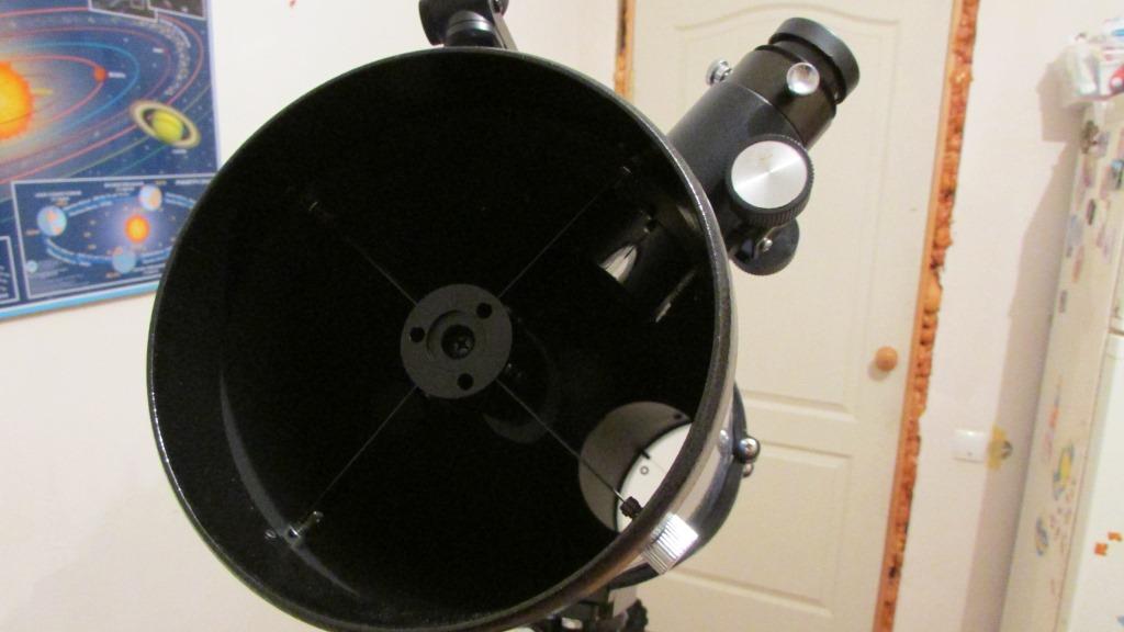 Зеркало, без сколов и царапин, "Голова" экваториалки работает мягко. Штатив рабочий, лапы фиксирует жестко.