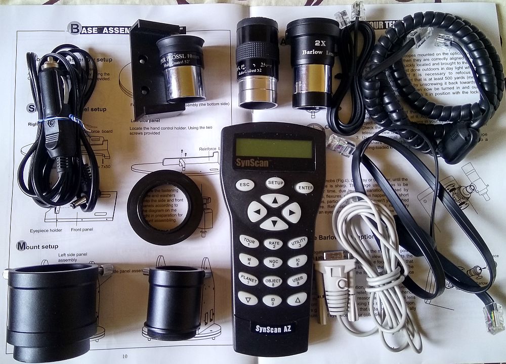Комплектация: Труба телескопа Монтировка Добсона с привода по обеим осям Пульт управлениия SynScan Окуляр Super PL 25 мм (48х), 1,25" Окуляр Super PL 10 мм (120х), 1,25" Искатель 9х50 Инструкция