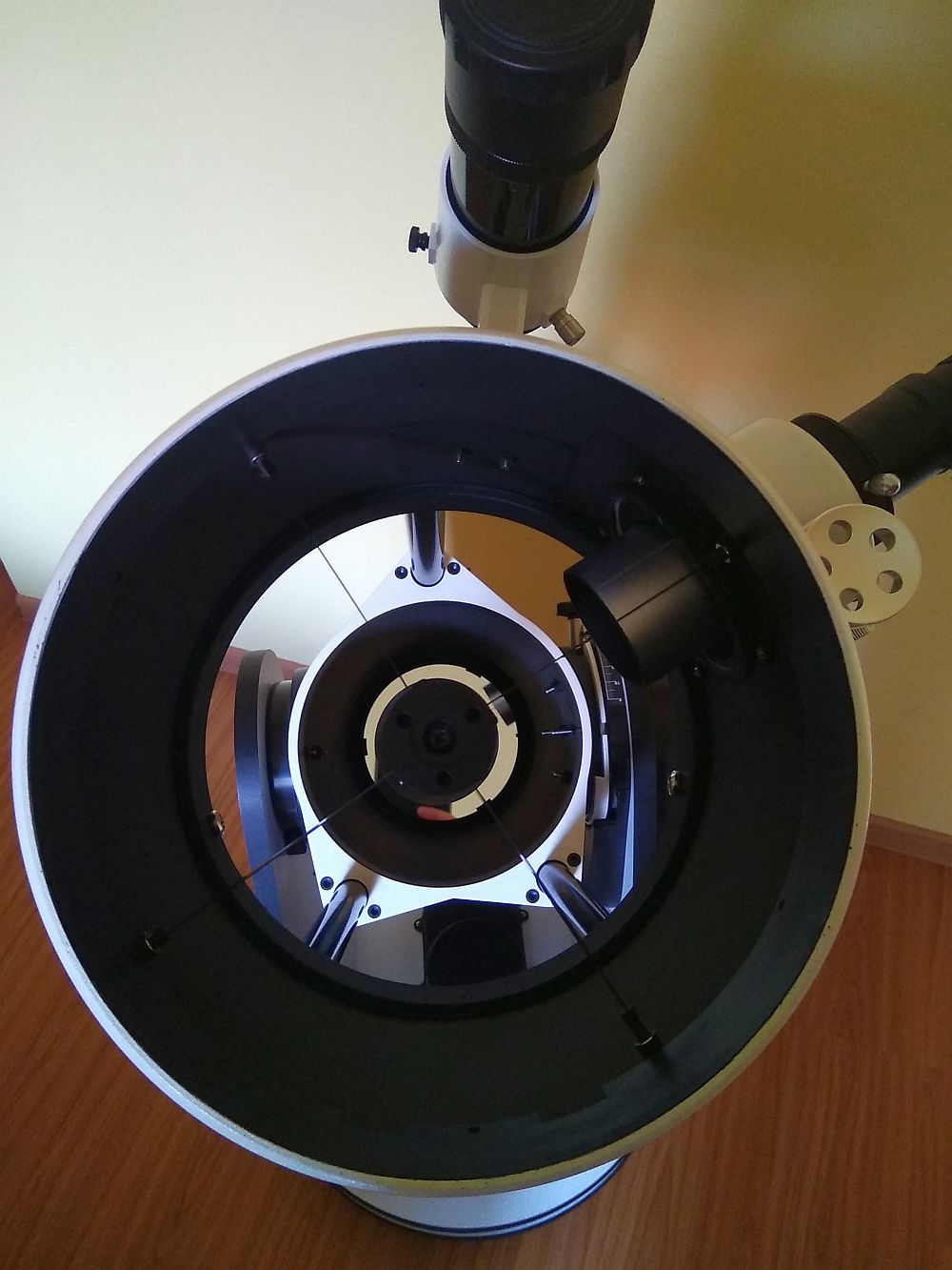 Характеристики/Описание: Универсальный разборный телескоп системы Добсона (схема Ньютона), установленный на низкой азимутальной монтировке и предназначенный для визуальных наблюдений небесных объектов. Главное зеркало данной модели имеет параболическую форму для исправления сферической аберрации, а диагональное зеркало имеет крепление на основе четырех тонких (0,5мм) растяжек для уменьшения нежелательных лучей на изображениях звезд и увеличения светопропускания.