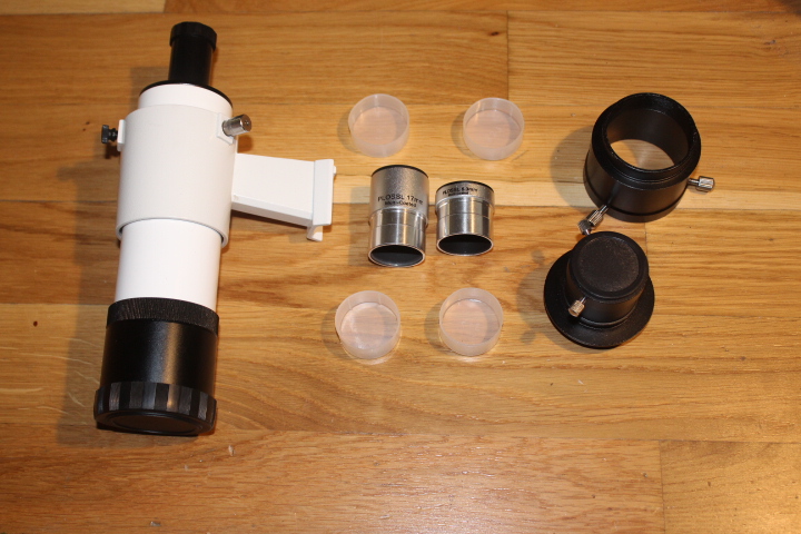Остались: труба, комплектные окуляры 17 и 6,3мм, искатель9*50, переходник 1,25\2,0,экстендер 2,0, ящик.