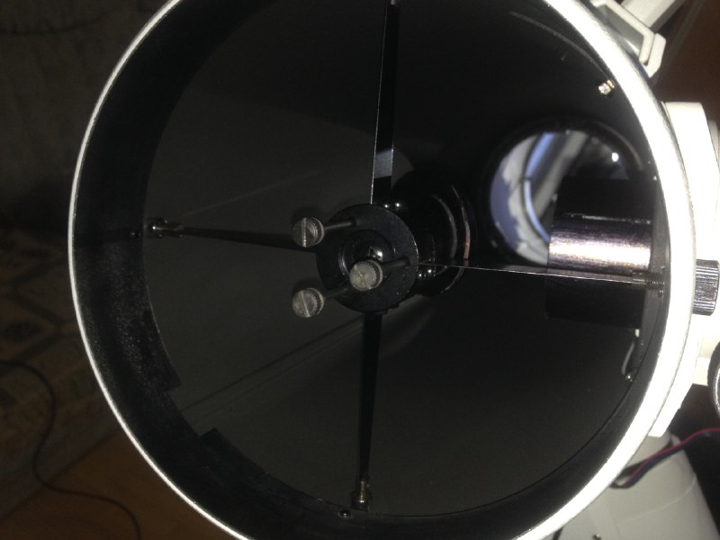 Характеристики/Опис: Sky-Watcher 15075 OTAW в хорошому стані,трубі пів року купляв тут на форумі,з доробків зачернив вторичку і стакан фокусера і поставив нормальні болти для юстирування вторички можна спокійно руками юстирувати так само легко як головне дзеркало. З мінусів 3 дирки на кришці яка закриває телескоп через 3 юстировочний болти вторички. В комплекті труба,кільця,ласточкин хвіст,шукач 6х30,перехідник на 2 дюймовий аксесуар,і сумка з 3 ма великими відсіками для фотоапарата встановленого в трубу або камеру,для аксесуарів(шукач,окуляри,акамулятори) і для Гіда.