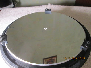 Зачернены диагональное зеркало (тыл), трубка фокусёра и тыл параболоида. Имеются незначительные косметические дефекты на покрытии трубы и искателя (см фото), следы на ЛХ от прижима. В трубе сделаны отверстия - одно напротив оси фокусёра для его юстировки, ещё два возле торца - для установки доп. искателя (основной использовался как гид).