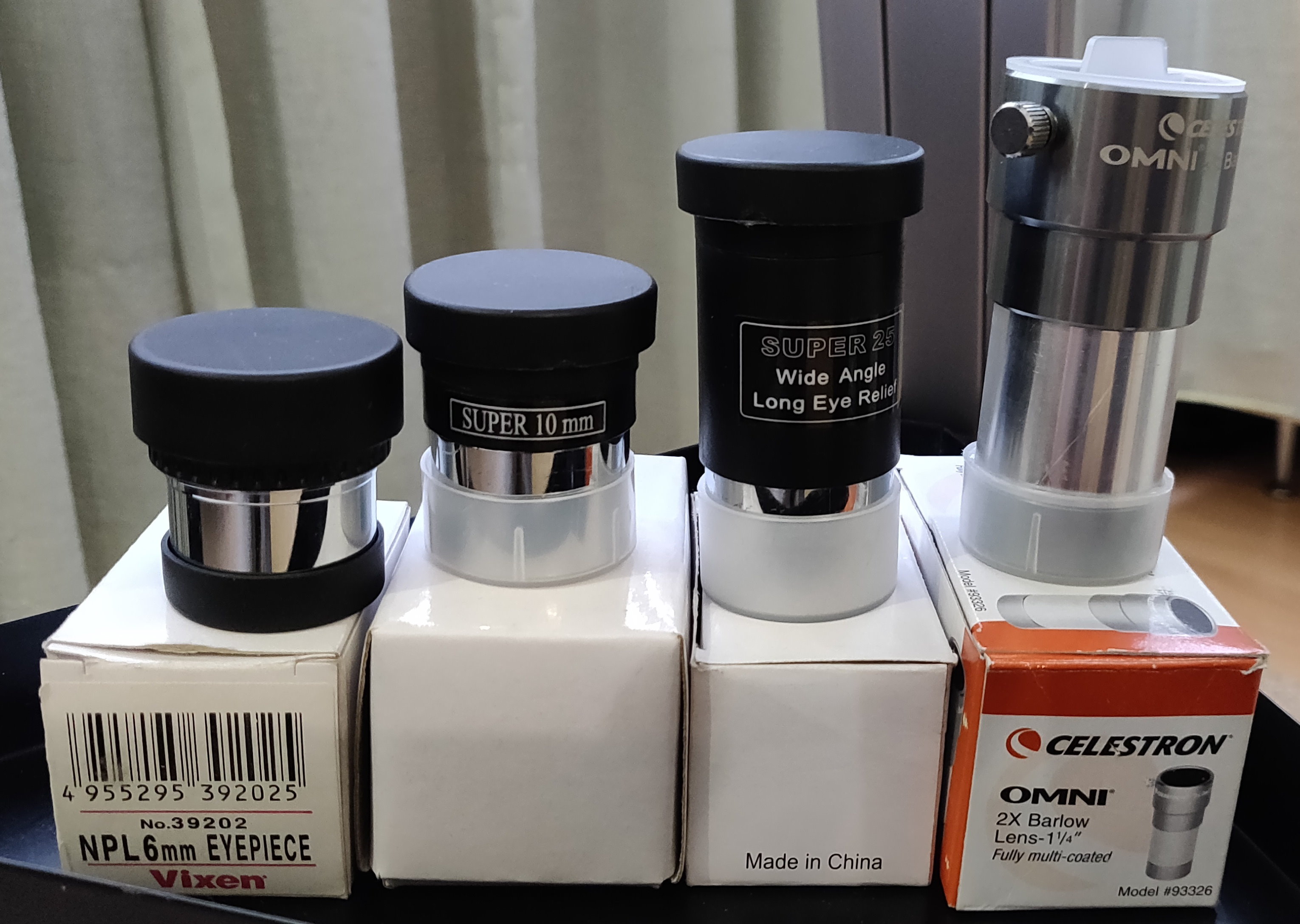 Окуляры в комплекте: - NPL6 Vixen (6mm) - SP10 (10mm) - SP25 (25mm, Wide Angle) - Линза Барлоу 2х