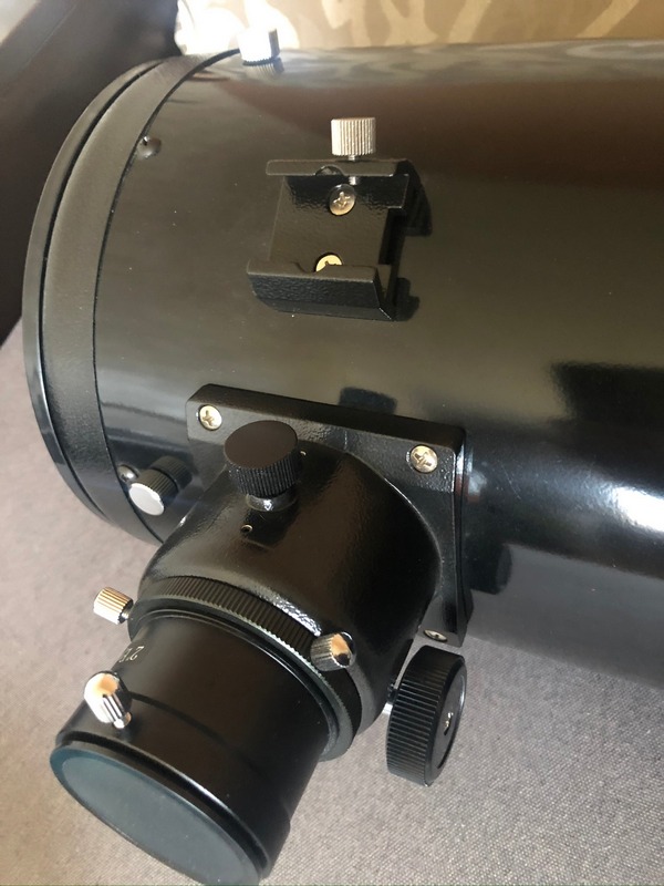 В комплекте: маска Бахтинова, переходники под 2" и 1.25" окуляры, адаптер M42-1.25, кольца с планкой (не родные, но полностью