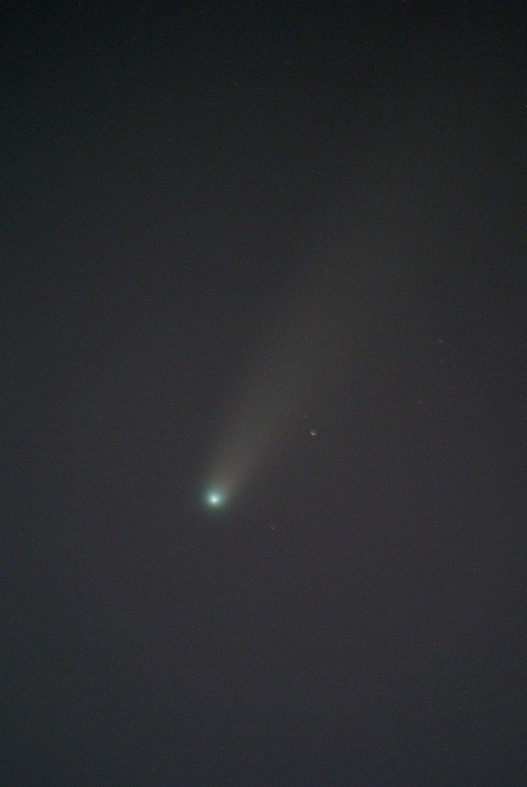 Я смотрел в 70 мм рефрактор при увеличение 28 крат очень классно видно было ядро кометы и хвост, при увеличение в 70 крат, такая же картинка, только чуть крупнее ядро кометы видно и картинка не много темнее.