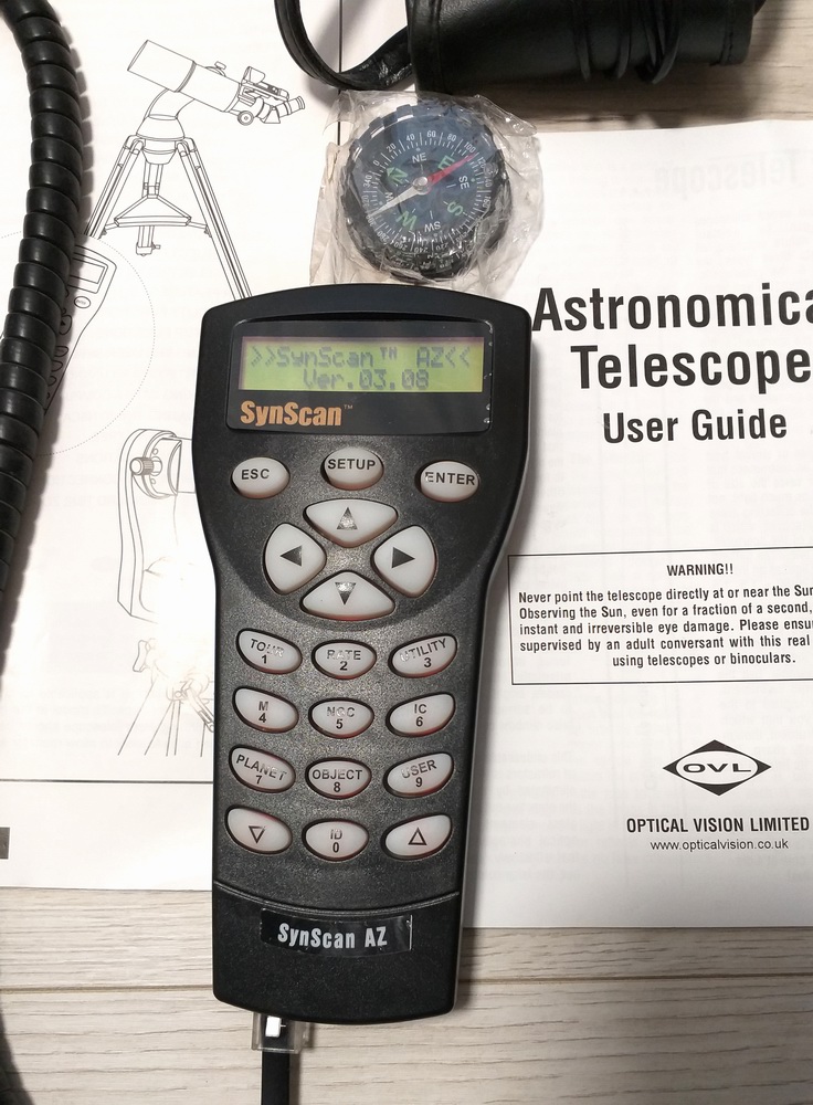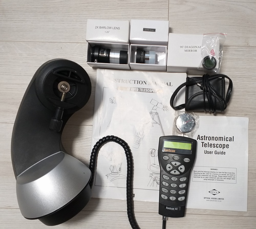 Труба телескопа Монтировка азимутальная SynScan AZ Пульт управления Искатель оптический, 6x30 Окуляры Super 10 и 25 мм, 1,25" Диагональное зеркало 90° Линза Барлоу 2x Лунный фильтр