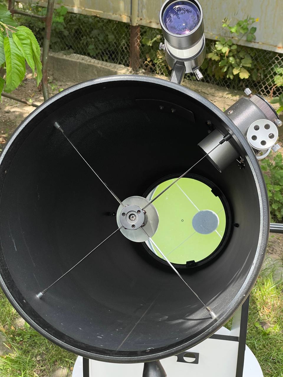 Телескоп в хорошем состоянии. Но есть один нюанс, на вторичном зеркале несколько лет назад появилась коррозия, и с тех пор не увеличивалась. Размер коррозии примерно 3% от общей площади. Фото прилагается.