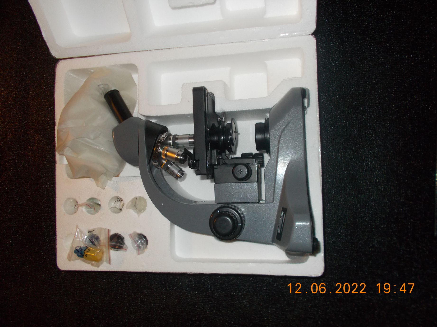 Состояние — новое. Микроскоп стоял собранным в коробке, на многих поверхностях сохранена защитная плёнка. Камера также НЕ использовалась. Комплекс был собран при покупке и проверен в работе с ПК (ПО LevenhukLite работает с Windows 10).