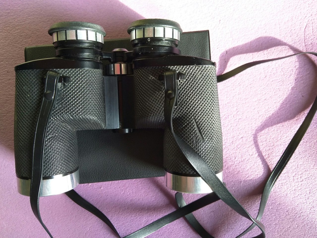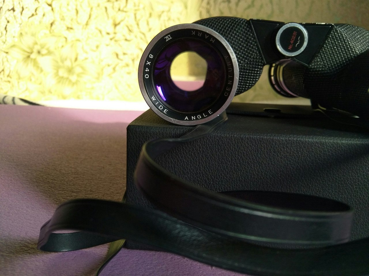 Бинокль 8x40 Японский, широкоугольный, Поле зрения на 1000м: 152 м, Угловое поле зрения, град: 9.5° Состояние хорошое, картинка чистая, внутри есть не много пыли на обзор не влияет. В комплекте: кофр и бинокль.