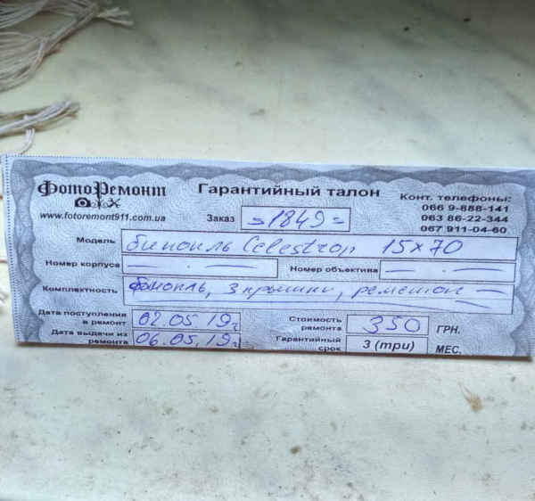 Продается: Celestron SkyMaster 15x70 . состояние отличное , стекла в порядке юстировка тоже .в комплекте, сумка, крепеж к штативу, ремень, крышки, паспорт и коробка. была трещинка на крышке корпуса призмы - видно на фото? трещина не от удара или падения , видать брак литья или сборки, напряжение в материале и со временем лопнула может перепад температур повлиял ( . отдал в ремонт в мастерскую подклеили заодно и проверили юстировку и почистили .короче т.о сделали на всяк случай. есть гарантия мастерской. бинокль в полностью рабочем состоянии как с магазина ) . по небу просто отлично ! нашел множество обьектов дипскай . продаю так как есть второй бинокль. 1500 гр ! без торга.