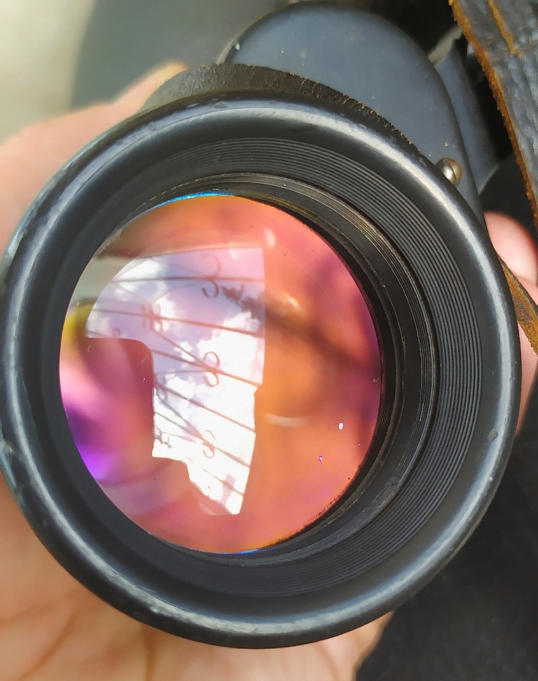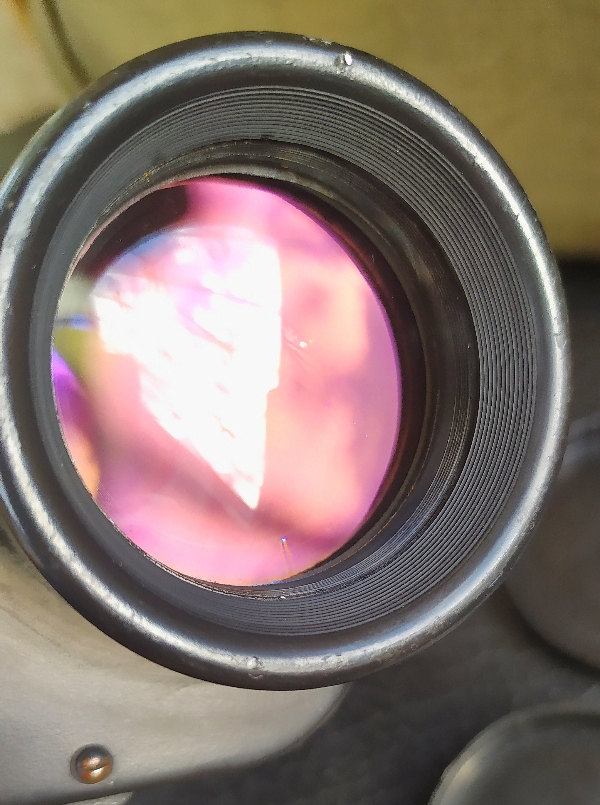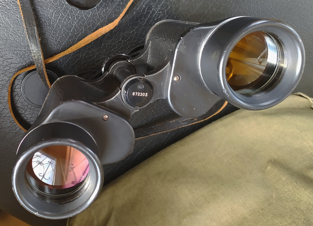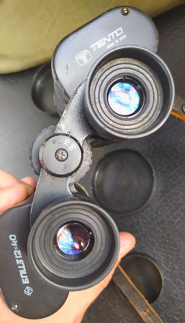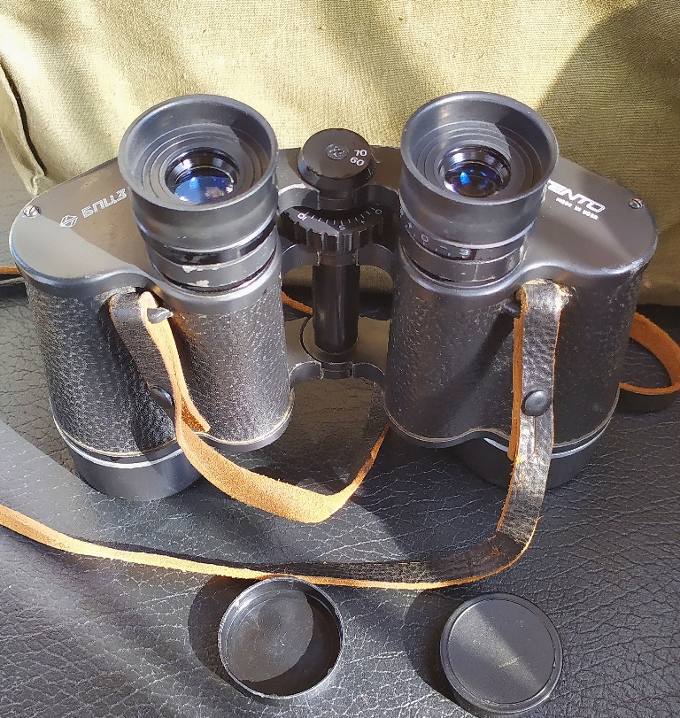 Для своих годов сохранился хорошо,лёгкая потертость краски корпуса,без видимых признаков механических повреждений, герметичность призменного блока не нарушена,прибор показывает четкую,чистую и приятную картинку,не двоит, по всей видимости не разбирался и имеет заводскую юстировку,механика работает как надо.К сожелению не сохранились алюминиевые декоративные кольца на окулярах,наглазники целые не потрескавшиеся. В нутри правого оптического канала видно прозрачное пятнышко примерно 2х3мм,видимо склейка и рядышком полосочка отлущеной краски с волос в толщину,но благо ети незначительные детали находятся по краю и на изображение ни как не влияют. Цена продан