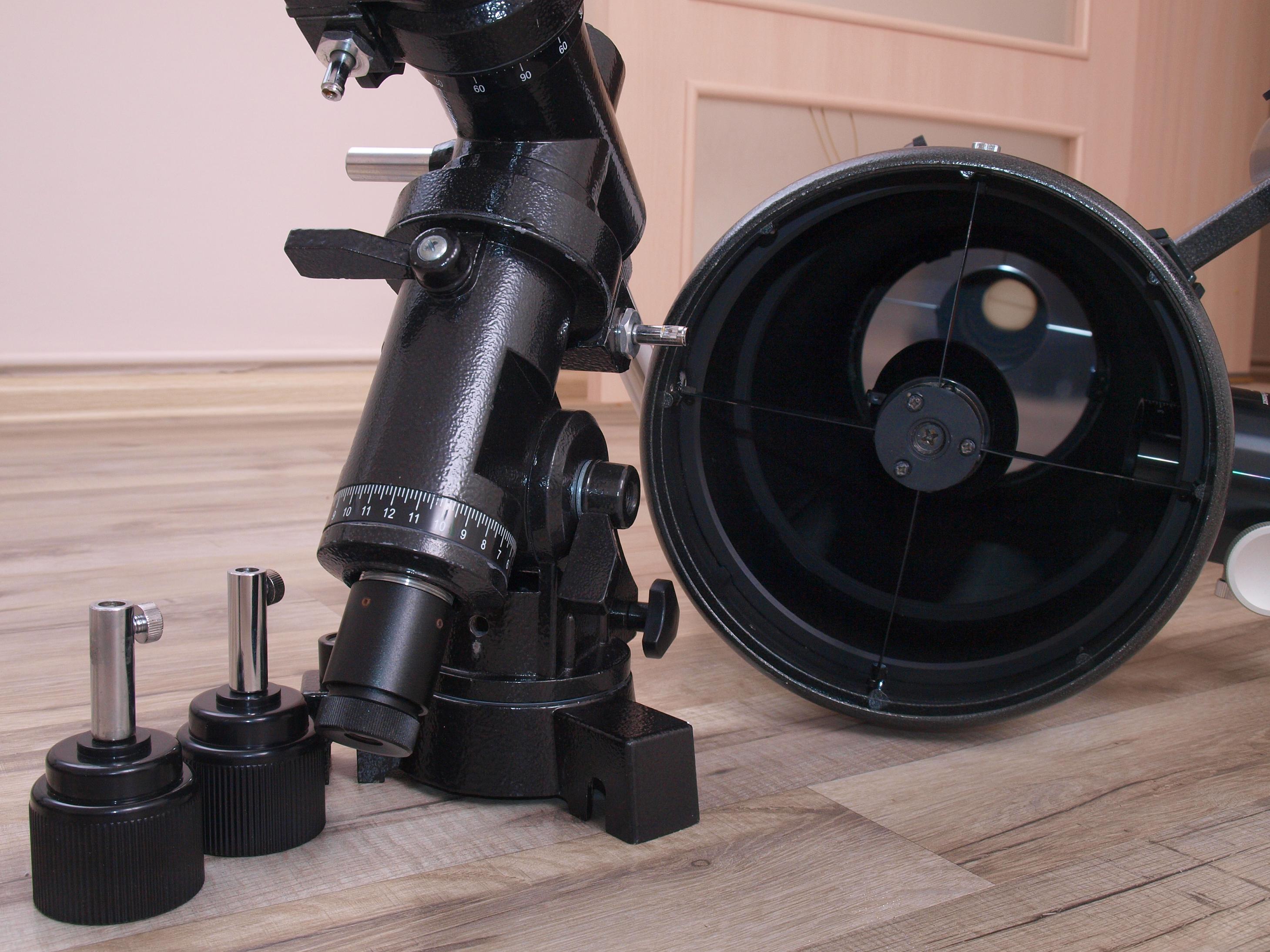 В комплекте монтировка EQ4, ось для противовеса, ручки тонких движений, искатель полюса.