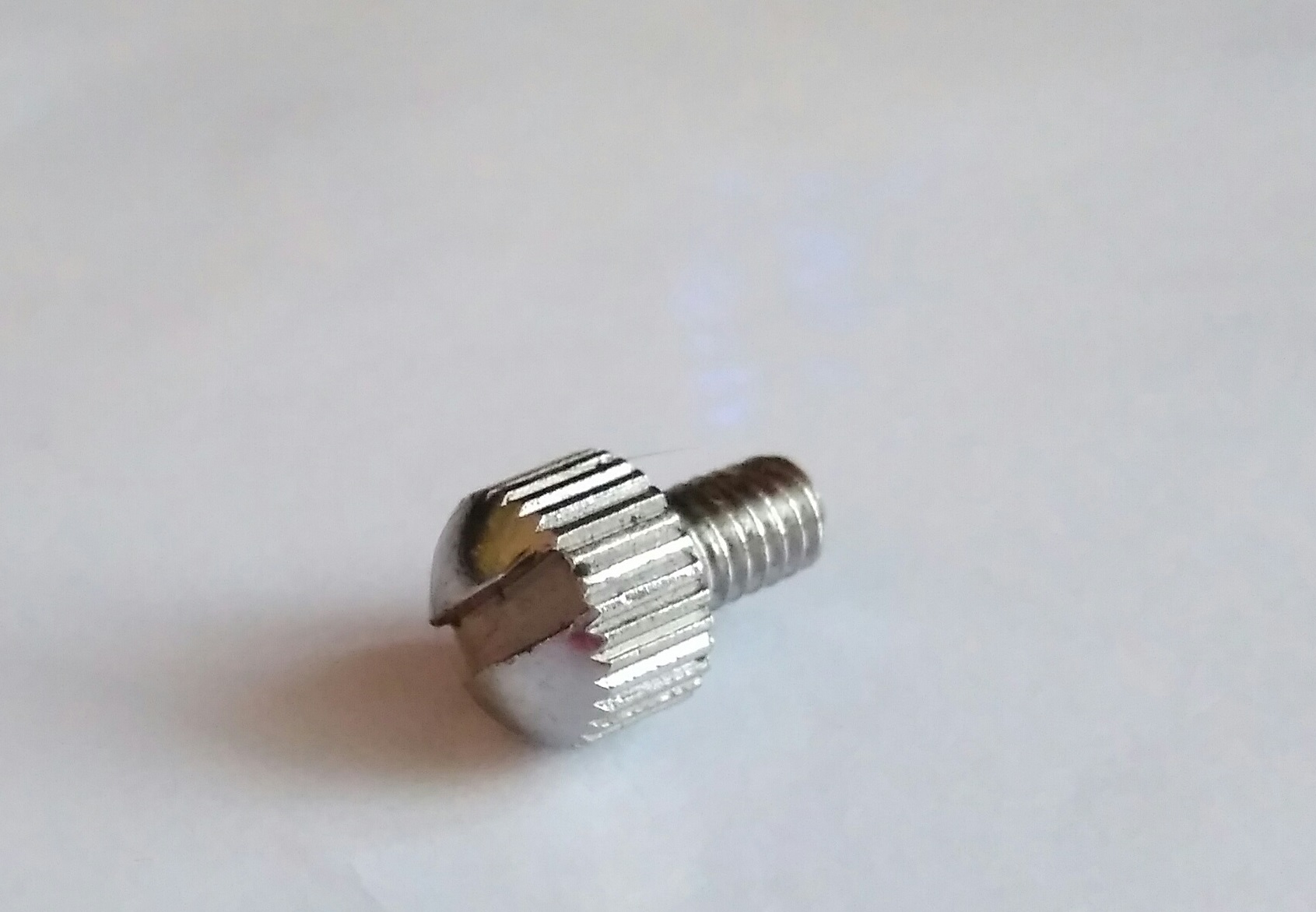 Диаметр 5мм, длина до шапки 7мм. Интересует именно с насечкой по контуру шапки чтоб руками можно было затягивать.
