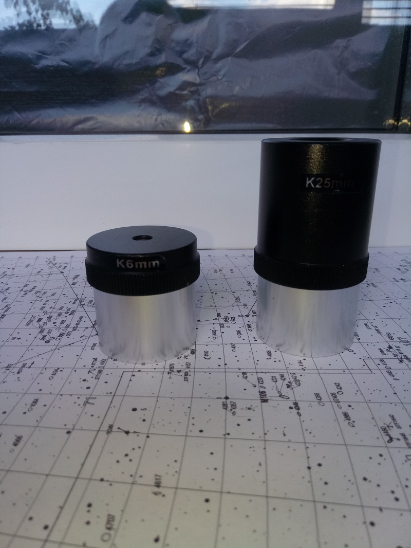 6 мм.- очень качественная просветленная оптика, использовал для наблюдения планет- дает очень чистую, контрастную картинку, не уступающую плесслу. Вынос зрачка меньше, чем у плессла, поле зрения больше,нет "духов", переотражений от ярких объектов в отличии от плессла. Оптика в отличном состоянии. "Ребра" на корпусе окуляров- для удобного хвата, резьба под светофильтры.