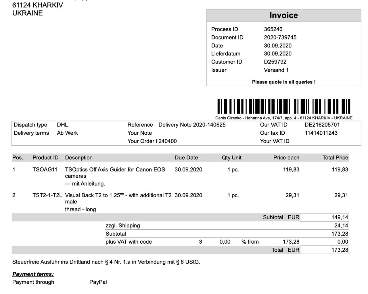 Состояние: новое, на телескоп не устанавливалось Причина продажи: пока это всё больше месяца ехало в Украину из Германии, купил другой Местонахождение: Харьков, O6757IO2O7 Пересылка: Новая Почта или личная встреча в Харькове. Оплата: наложенный платеж или наличность при встрече Тестирование: нечего тестировать Поддержка: бесконечность, поделюсь собранной информацией по настройке гидирования, расчету фокуса, планированию съемки в Stellarium Манибэк: нет Цена: в идеале за всё хочу 6002+328 = 6330 грн - (цена Teleskop Express, доставка + пошлина)