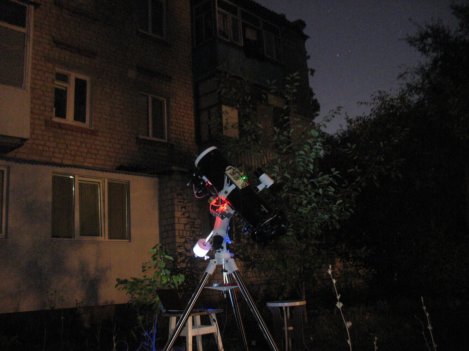 Алексей Локотков писал(а): Михаил Астроскоп писал(а): Моя улично-балконная обсерватория, в режиме уличной  , в действии. Процесс съемки 5 октября. 4 кадра по 15 сек. :
