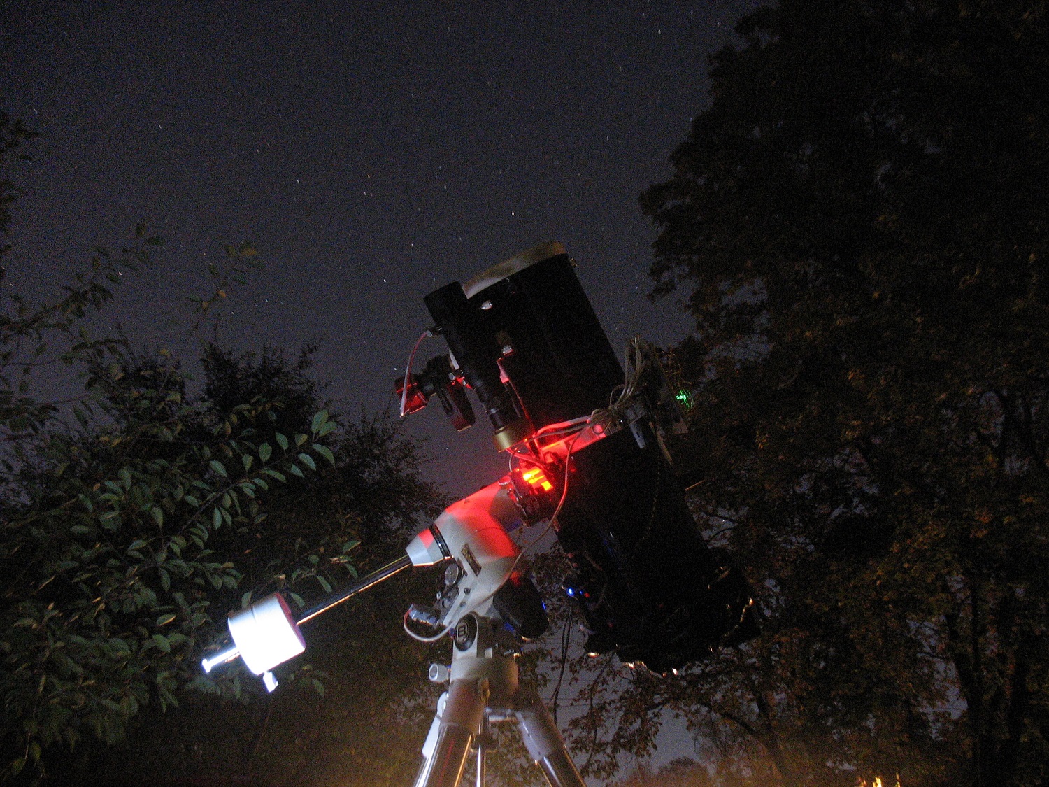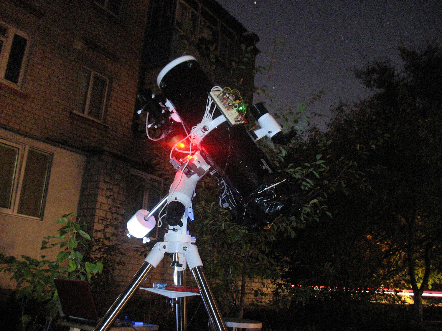 Произошла очередная модернизация сетапа. Заменен гид, основной калибр, колонна от Мицара заменена треногой. Несколько изменилось место наблюдения. Нет, снимаю не из квартиры. Выношу все это добро на улицу, вместе с собой. Вот, никак не переделаю наиболее временный элемент, плату управления.  Теперь несколько фоток.  Просмотров: 2078