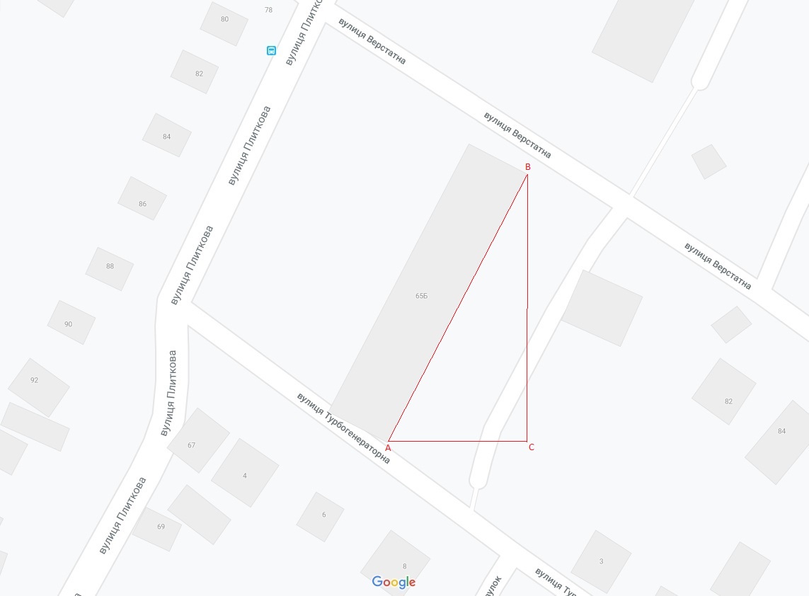 Кратко опишу, как найти приблизительное направление на полярную звезду, когда она не доступна. Собственно я тоже столкнулся с этим, поскольку окна моего балкона входят на юго-восток, полярная естественно не видна. Находите свой дом на карте. На рисунке рассмотрим дом 65Б. На карте север вверху, юг внизу. А дальше вспоминаем школьную геометрию. Рассматриваем треугольник АВС. В графическом редакторе меряем стороны АС и ВС, скажем в пикселях. Далее делим АС на ВС, и вспоминаем, что полученное число равно тангенсу угла В. Далее по тангенсу, при помощи калькулятора находим сам угол В. Вот это и есть тот самый угол, на который надо повернуть монтировку. Ну а дальше транспортир и линейка в помощь. Естественно это грубая установка полярной оси. А дальше метод дрейфа.  Просмотров: 4773