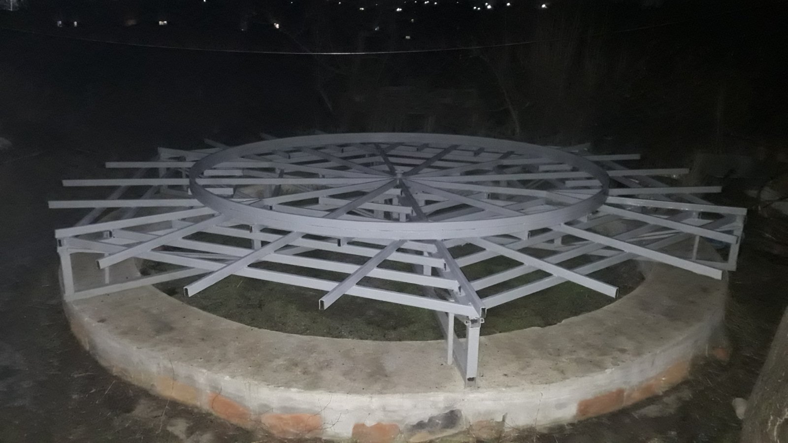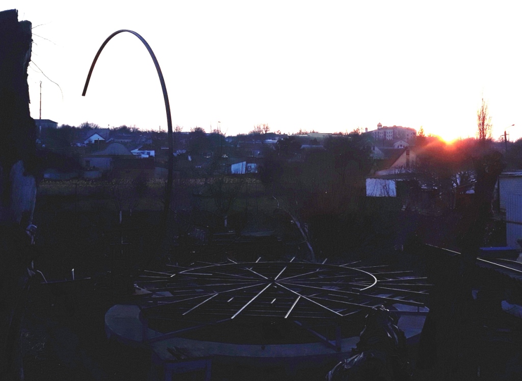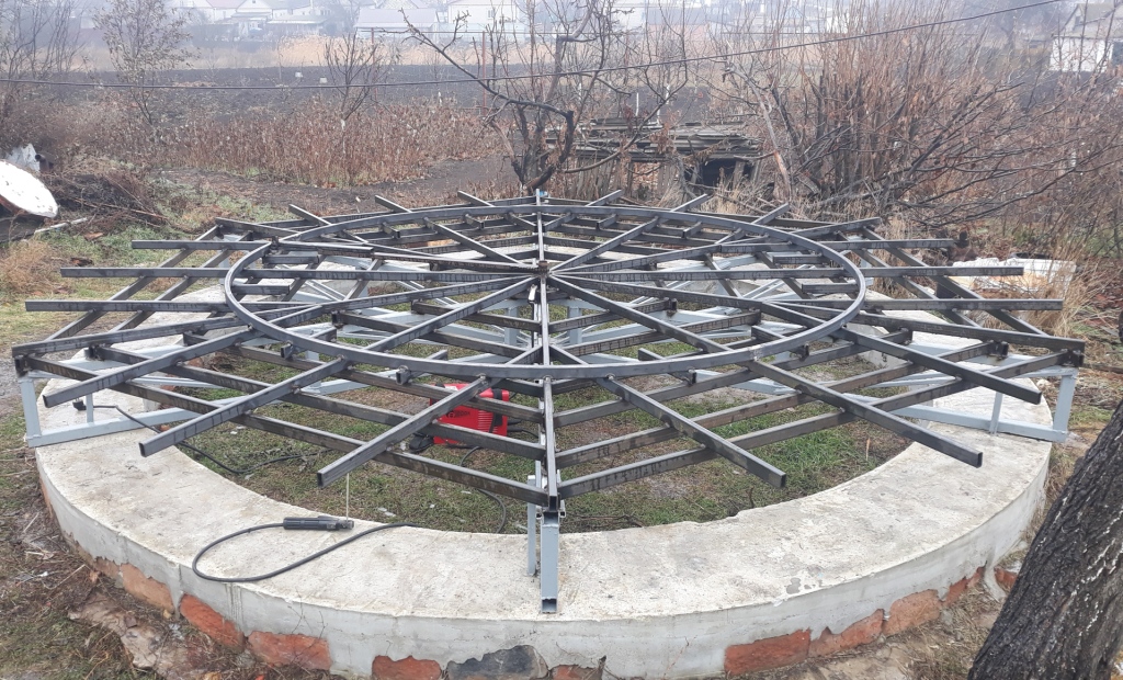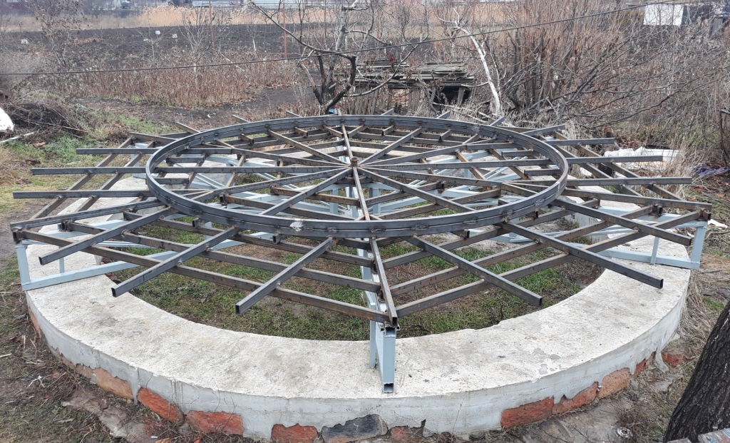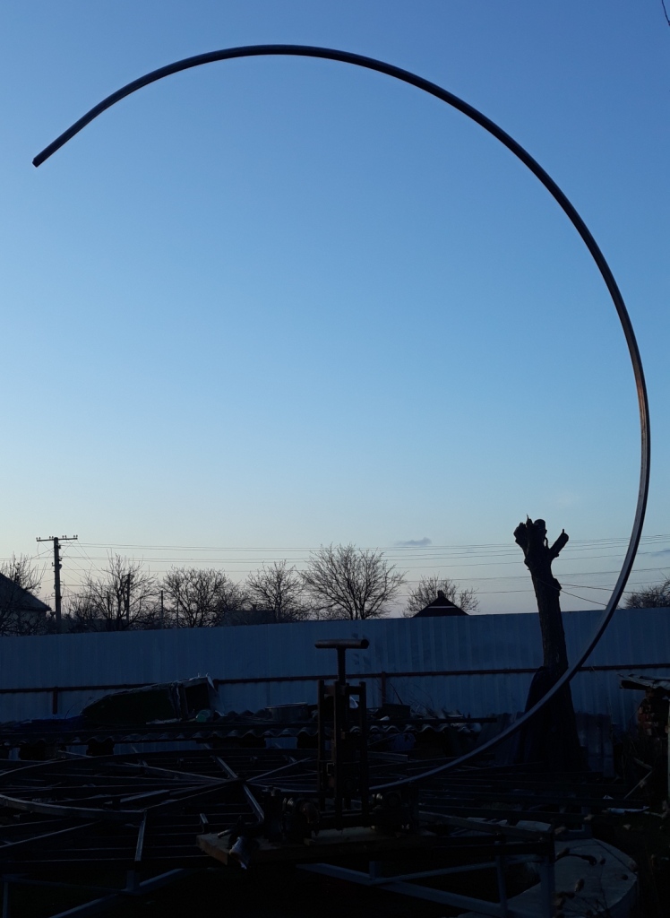 Підібрався до одного з самих важливих етапів - створення основного кільця, Кола із профільної труби, по якому як по рельсам будуть рухатися коліщата що нестимуть на собі купол обсерваторії, дозволяючи йому обертатися навколо своєї осі. Тут потрібна якомога більша точність, жорсткість і все це справді критично. Спеціально для цього діла, ще декілька років тому зробив хардкоровий трубогиб, який виглядає дуже страшно і по колхозному, але обійшовся мені тоді лише по деталях більше тисячі гривень. До цих пір ні на чому було його нормально протестувать. Не знав чи добре він працьює. Тож пришов час випробувань і перевірок теорій і працездатності приладдя. За перший день зробив одне коло, але темніє зараз рано, тому трішечки не встиг. Залишився зазор біля одного сантиметру. В темряві вирішив не бокопорити і переніс бородьбу з цим на наступний день. Виявилося що трубогиб працює нормально.