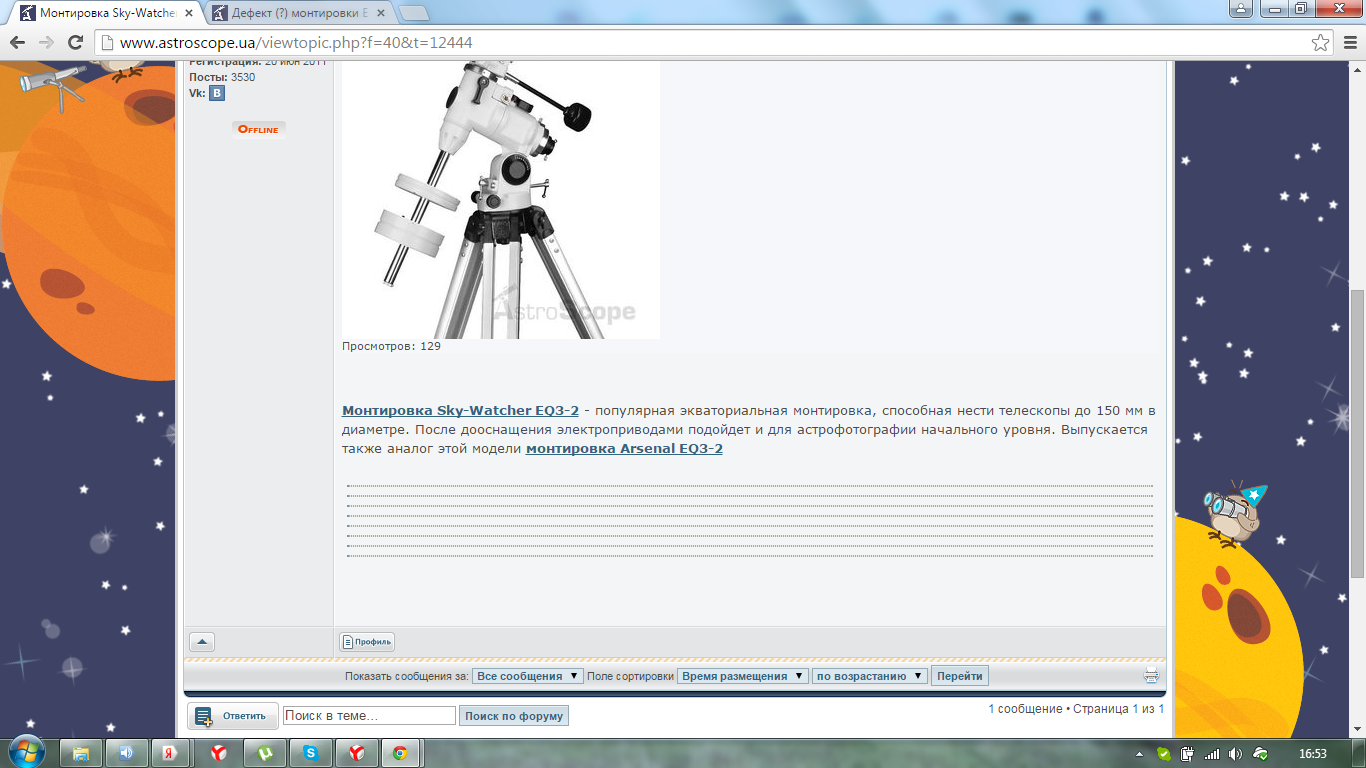 Ольга, видео в спойлере Видеообзоры, далее Частичная разборка монтировки EQ 3-2 , далее ссылки на видеоролики. Просто щелкаете на знак "плюс" и спойлер открывается