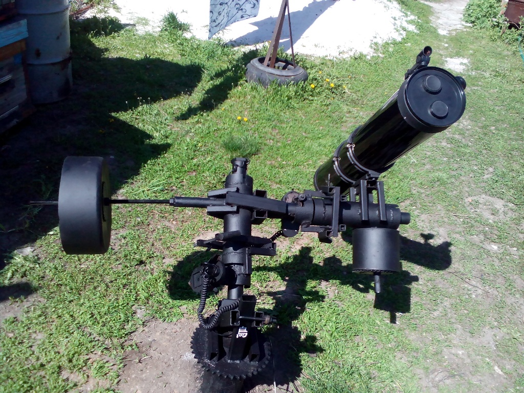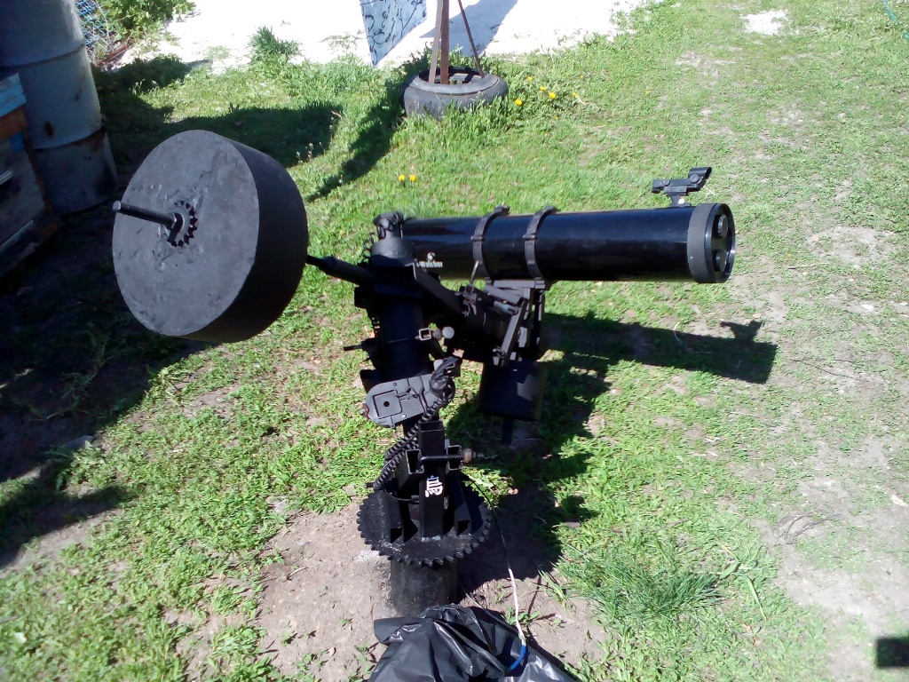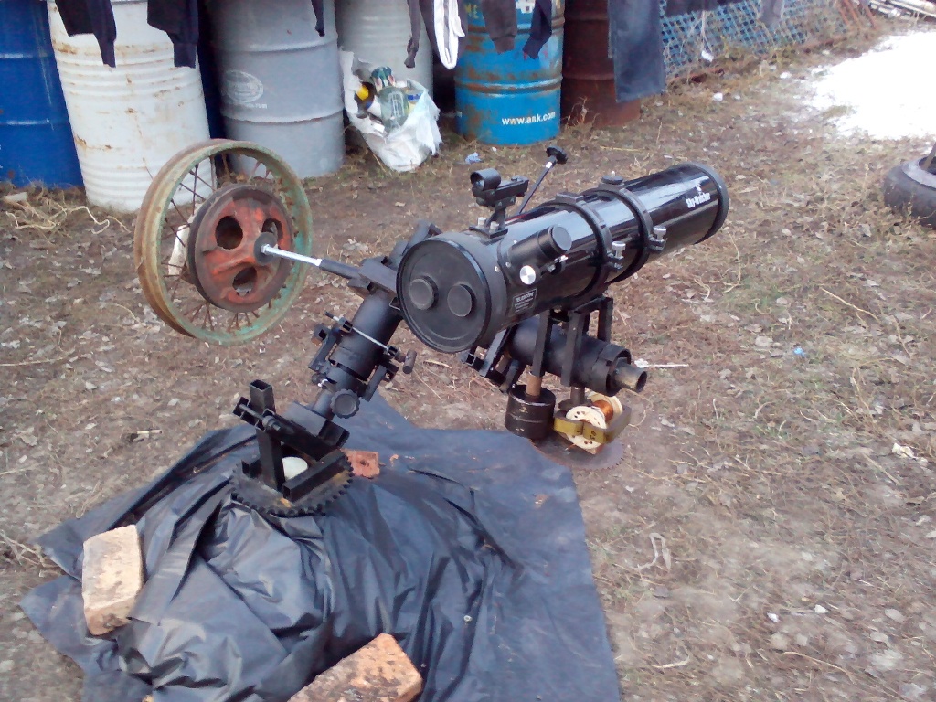 Здравствуйте дорогие друзья. Имею телескоп Sky-Watcher 1309EQ2. Последнее время замучила монтировка EQ2. Она никогда не обладала достаточной жесткостью, а теперь еще и стопорные болты начали поскальзываться. Вместо того чтобы подремонтировать старую, мне захотелось создать новую. Посмотреть, как это получится из подручных средств и материалов, без единой специально выточенной на станке детали, бес заказных узлов и механизмов специально сделанных для астротехники. Короче слепить «чудо» из подручного металлолома и ширпотребных деталей что продаются в каждом хозяйственном или магазине автозапчастей. Сложить в гараже на коленке при помощи сварки, болгарки, отвертки, молотка и «какой-то матери». Вот это была моя мечта. То есть сотворить эксперимент, построить уникальную игрушку нетипичным способом. Узнать, смог бы неандерталец каменным топором смастерить себе корявую телегу, если бы знал как выглядит колесо? Поймите меня правильно, если ставить целью: получить качественное оборудования для тонких наблюдений, или астрофотографии – советую просто купить себе хорошую заводскую EQ5 с приводом и синсканом. Тут дело совсем в другом, скорее в отдыхе для души. Или, если хотите, в детстве конструкторам не наигрался .