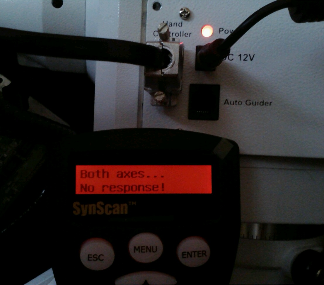 Я для начала проверил/прозвонил кабель соединения "пульт -- монтировка" и возможно разъемы этого соединения (хотя бы визуально, под лупой). Потом можно попробовать управлять монтировкой без пульта, с ПЭВМ - понадобиться кабель типа такого https://astroscope.com.ua/interfejsnyj_ ... a/3036.htm.
